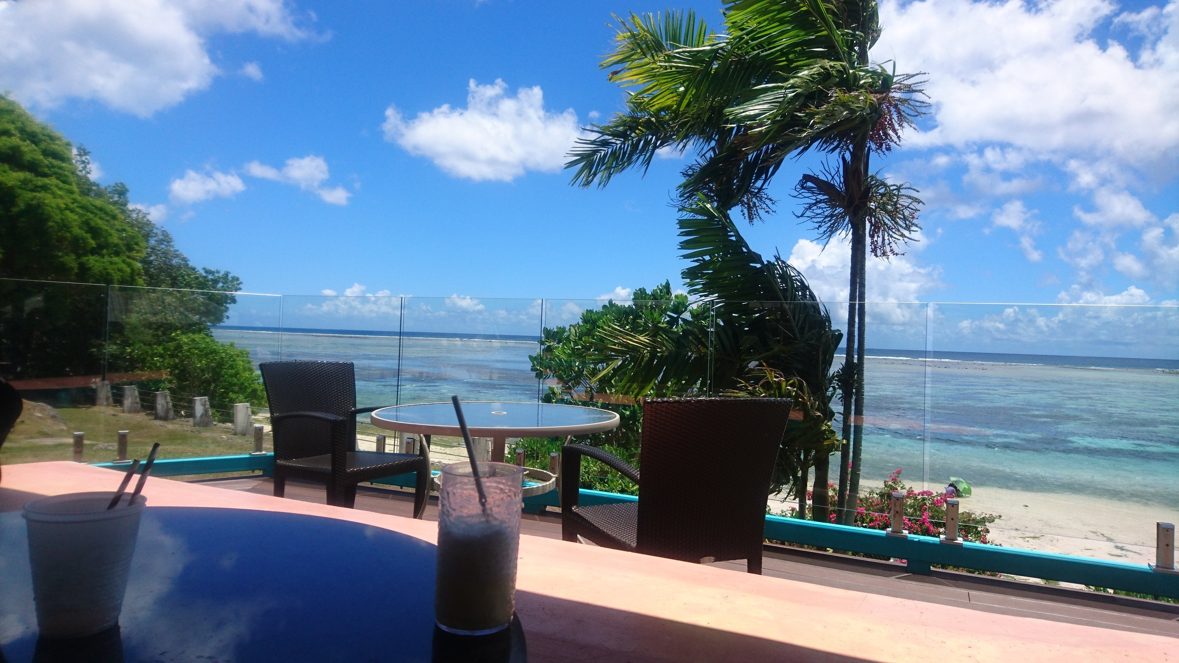 (↑昔行ったグアムでの写真。まさにパームツリーテラス!)