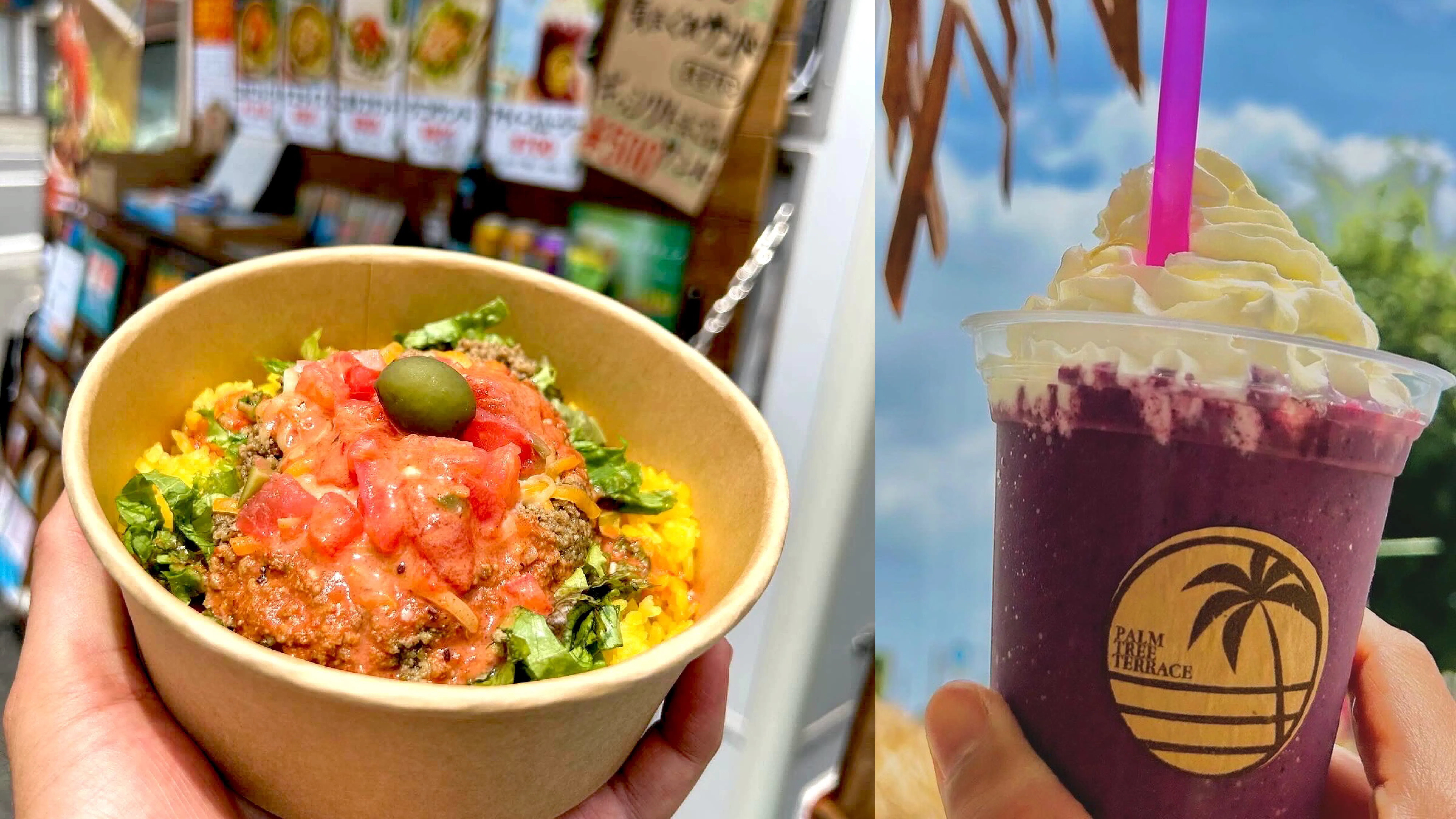 お店では、タコライスとアサイースムージーをメインに提供しています。