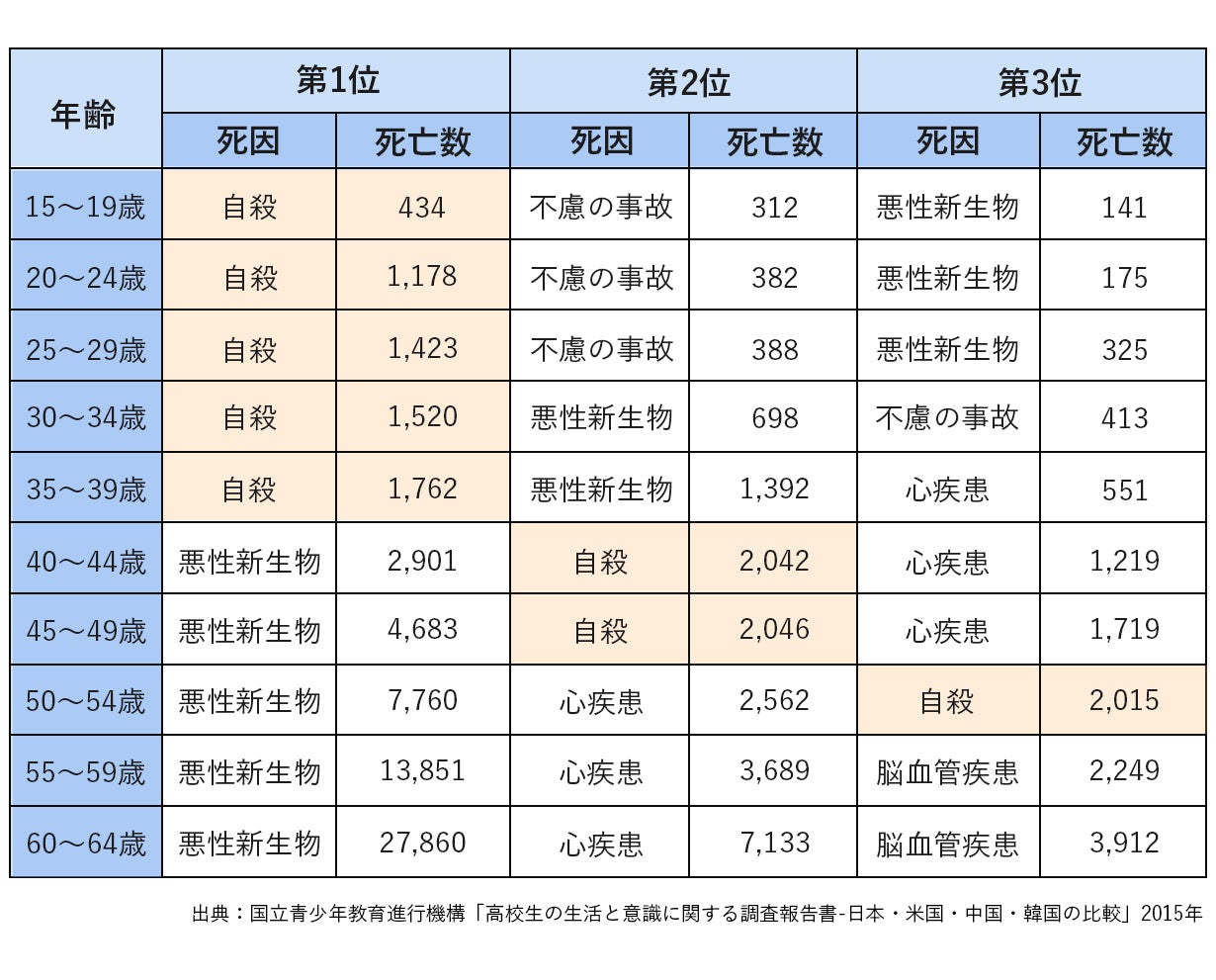 そして、日本の若者、15歳〜39歳の死因の第一位は、なんと自殺。こんなにも豊かで、平和な国なのに、学校や職場などでストレスを抱え、自らの命を断つという悲しい選択をしてしまう人が多くいます。