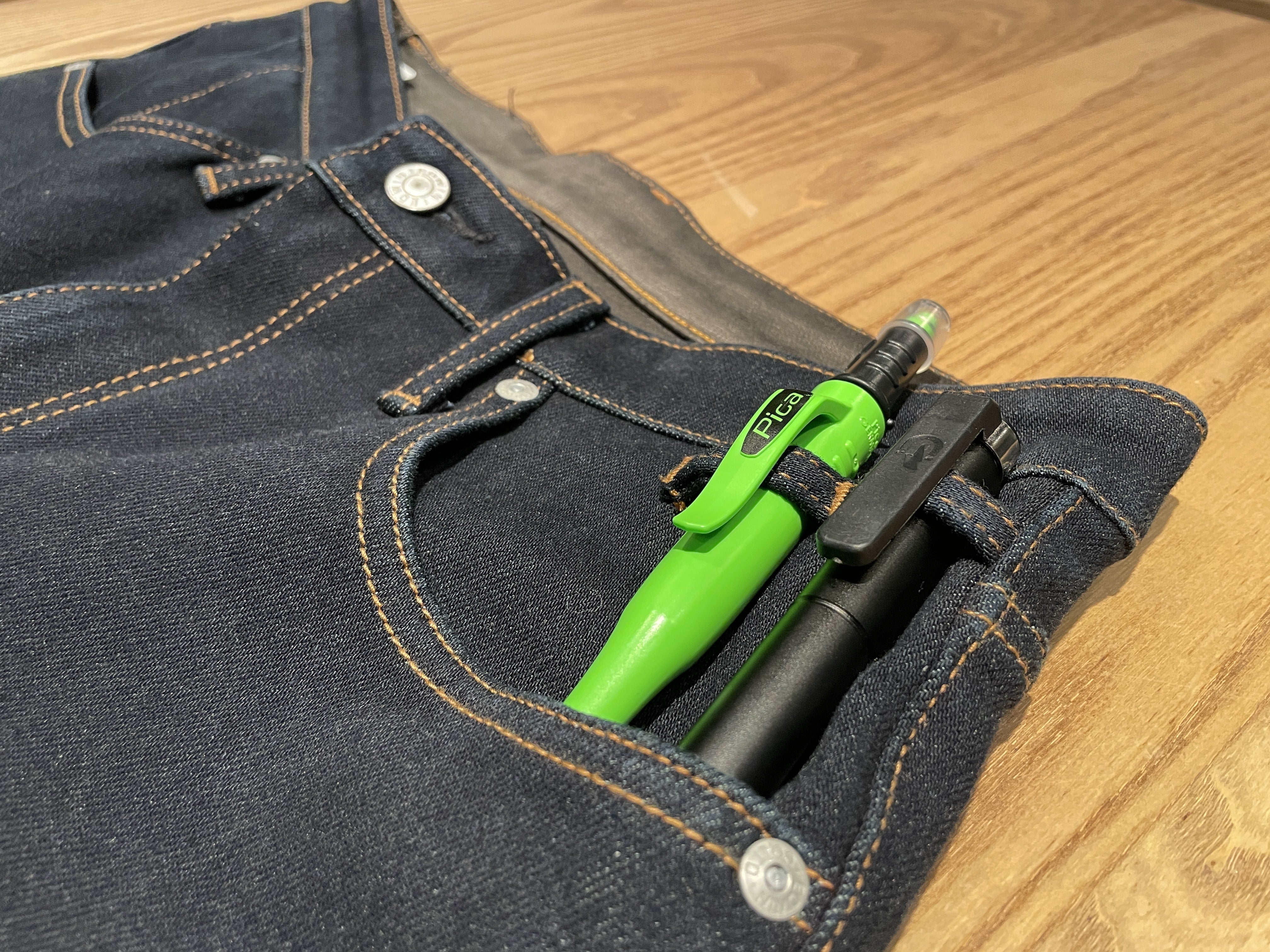 2.移動に必須な車両。近代標準装備化されつつある イモビライザーキー、スマートキー。便利だが紛失した際、再発行は非常に難儀。 これを防止すべく、普通の5PKに付くであろうコインポケットに変わり イモビライザーキー、スマートキ-の紛失防止用のファスナー付きポケット(EDWINが意匠登録出願中)を搭載。 またFACTRY GEARオリジナル機能として、紛失防止用のファスナーで作業対象に傷、損害が出ない様、 ファスナーをカバーする専用仕様を採用。