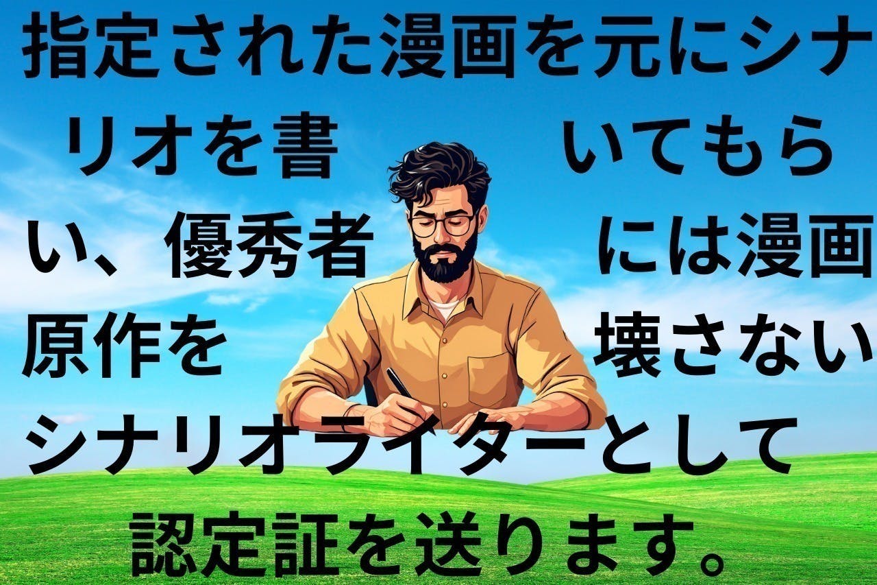 3,締め切り後、漫画原作を壊さない優秀なシナリオライターは認定証をメールで贈呈(非物理)します。