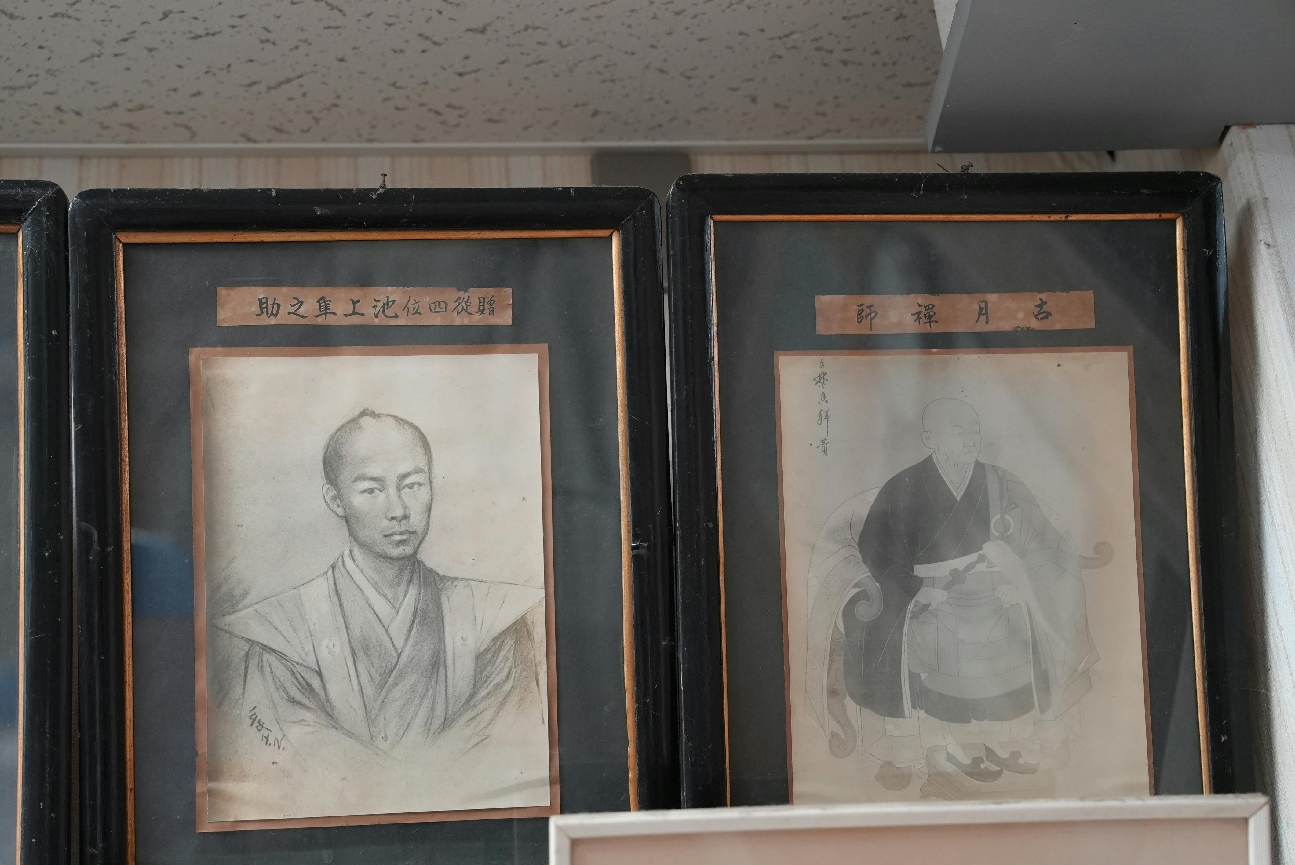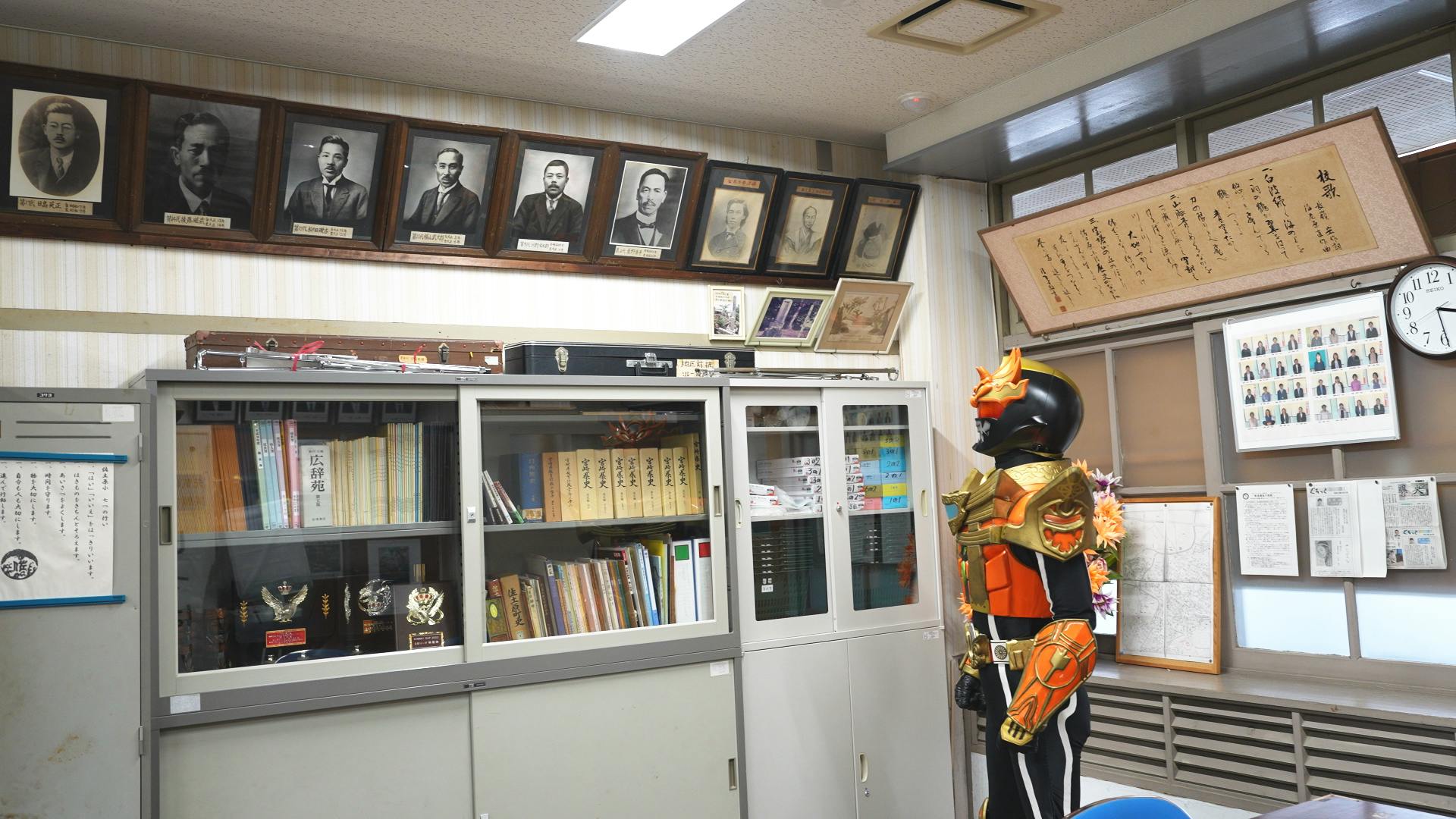 歴代校長の顔写真がずらりと並ぶ校長室。