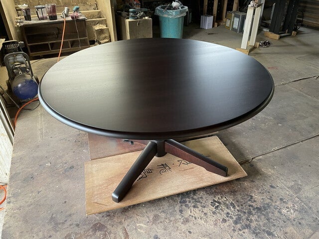 写真については、修繕・磨きを施した丸テーブルの写真になります。