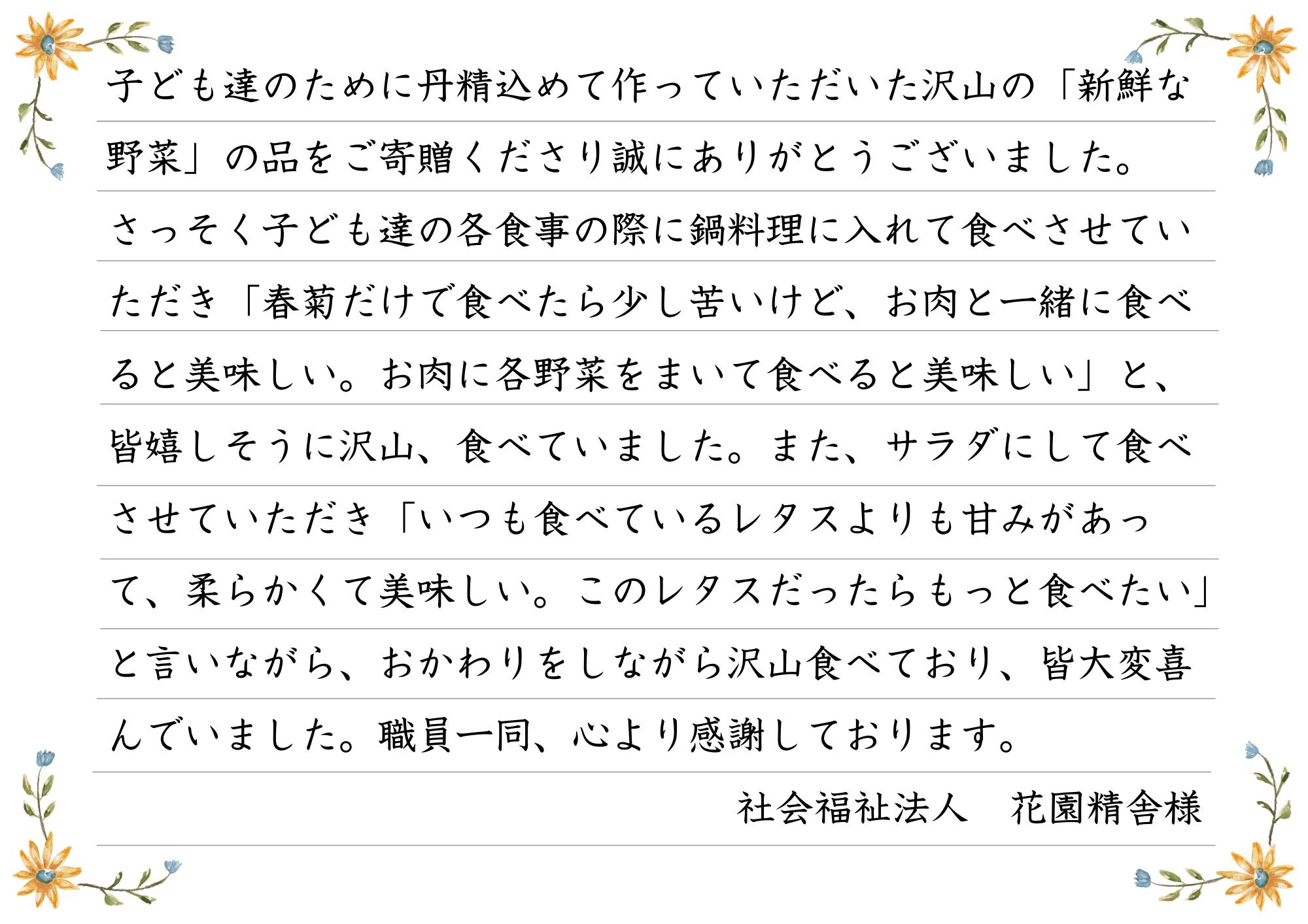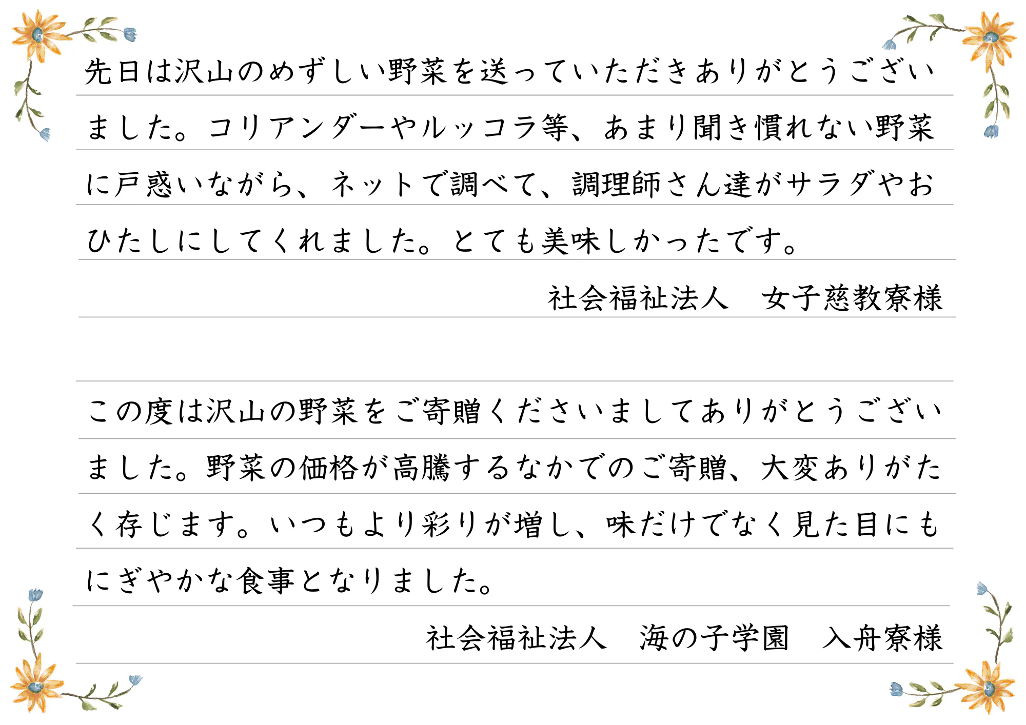 物資を受け取られた施設からは、「本当に助かってます」など、嬉しい声をいただいております。