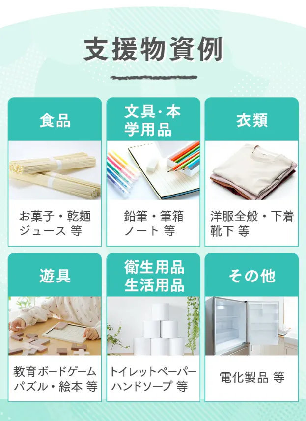 特に、日用品や学用品、食料などの物資は、子どもたちの健やかな成長のために必要不可欠。しかし、現状では、十分な物資が届いていない施設が多いのが実情です。