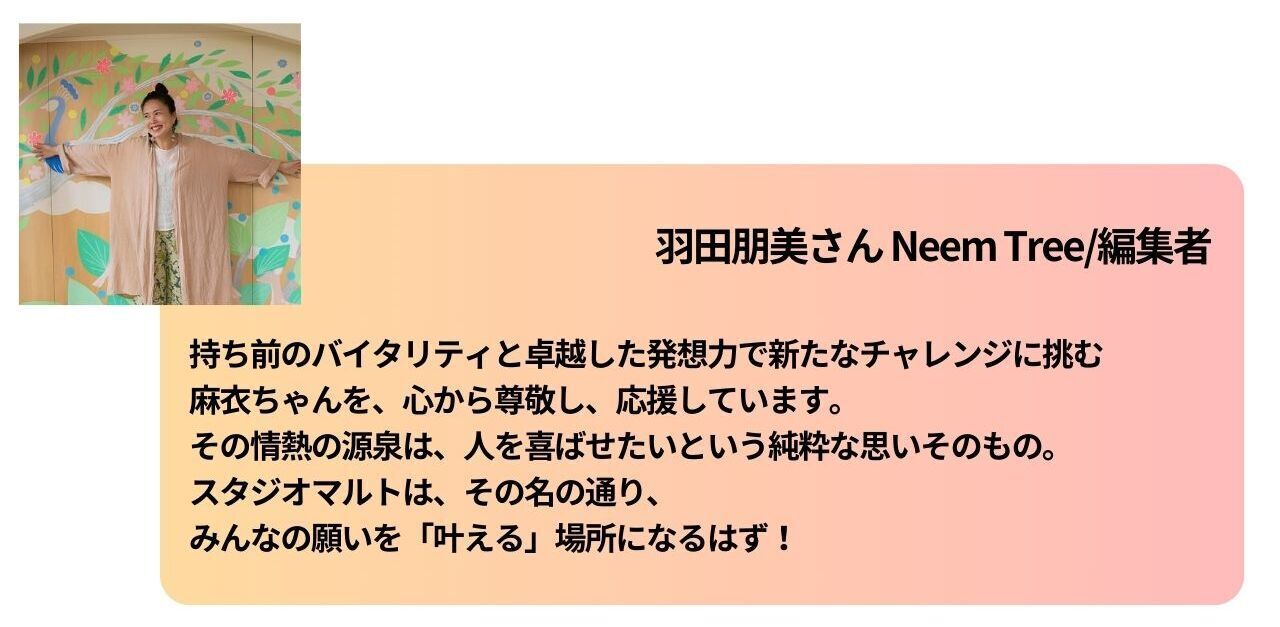 マルトと一緒に、新しい出会い、新しい居場所を探す方や、発信したい人やその種を持つ人に、おすすめです!