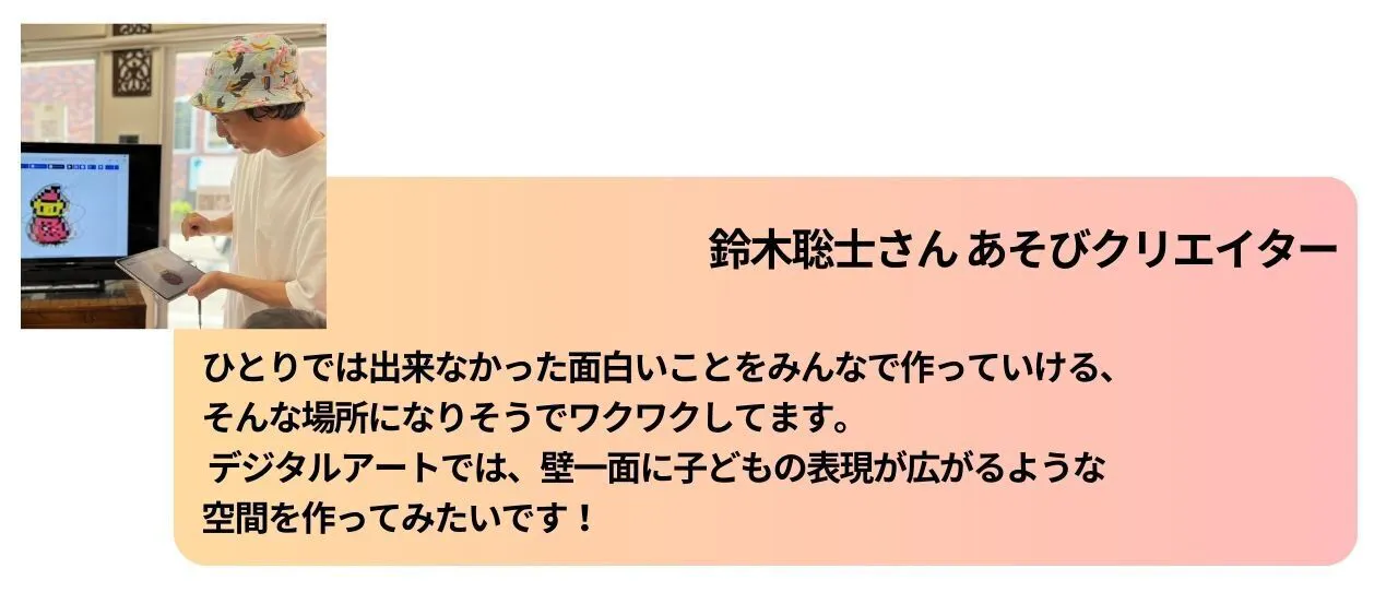 こども達にはもちろん、おとな達にも、楽しくなる、前に進みたくなる、そんなきっかけとなる出会いをたくさん作っていきたい。