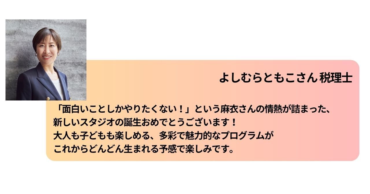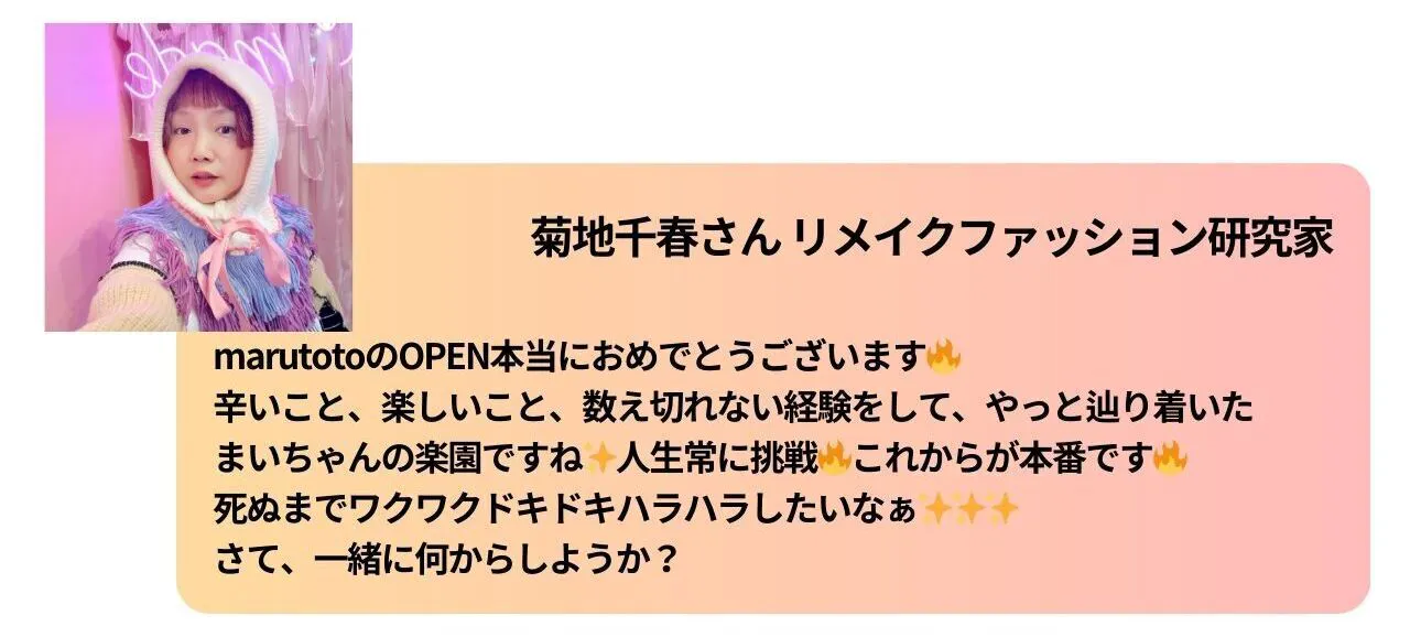 2025/03/21 23:14creative studio maruto ○+ここをオープンな場所に、ここに集うみんながやりたいことやハッピーが叶うようなことをしていきたいと思っています。先日、みなさんのご支援で環境を整え、無事保健所も通って、飲食営業許可もとれました!イベントでここで作ったご飯をだしたり、ポップアップ飲食店をやったりできるようになったのです。炊飯器他、まだまだ足りてないものはあり、これから使う人の意見を聞きながら買い足していきたいと思っています。これから、皆がここに集い楽しんでくれる光景が浮かびます。本当にありがとうございました。そして!!ついにマーケットイベントが実現します。3月23日(日)maruototo market 第一弾をやります!ここで出会えるのは、おいしいもの、かわいいもの、特別な体験。おとなもこどもも喜んでもらえるような方達と一緒にやります。韓国料理、ブリトー、牡蠣、ワークショップ、占い、アパレル、雑貨など、もりだくさんのメンバーで第一弾をスタートします。詳細はこちらです。https://maruto.co/news/1192/出てくれる人も、来てくれる人も、楽しんでもらえるようなイベントにできたらと思っております。 もっと見る
