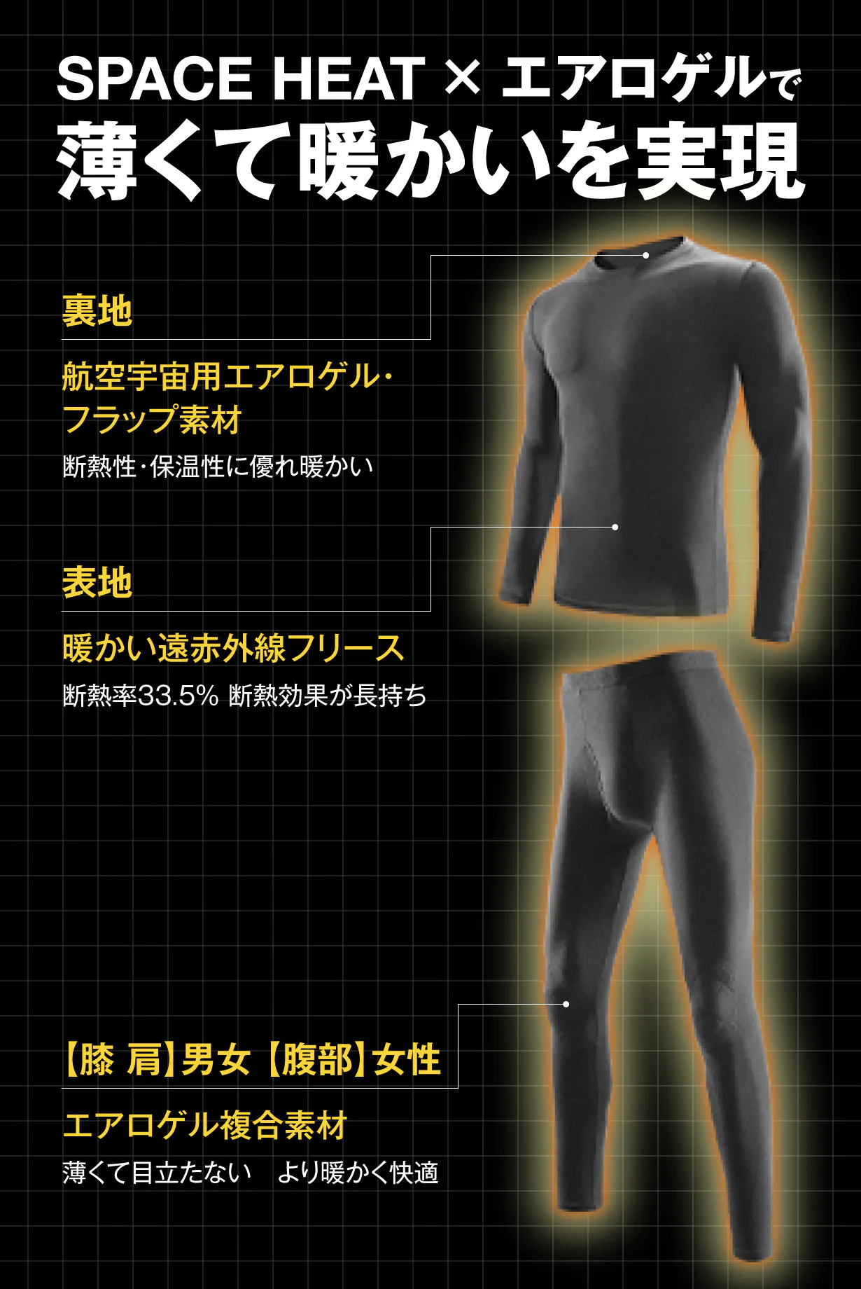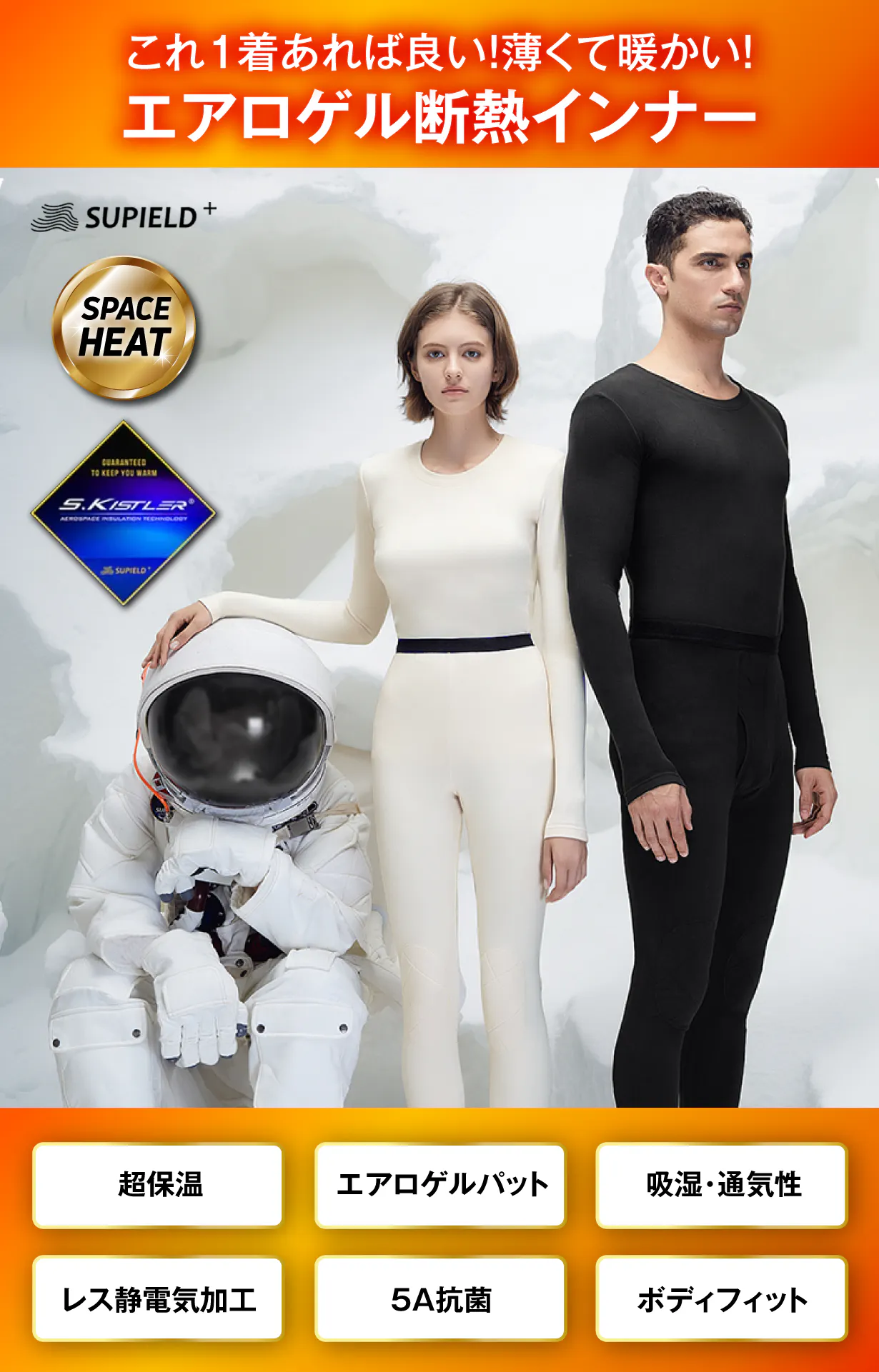 【宇宙服素材エアロゲル×超保温繊維技術】薄いのに超極暖!保温吸湿、着心地抜群のインナーが遂に登場!