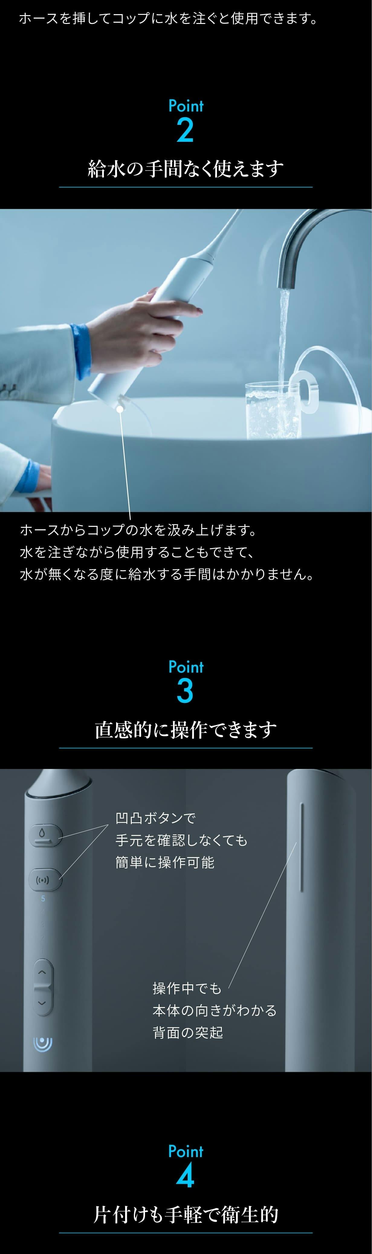 水流と音波振動でキレイにしてください。