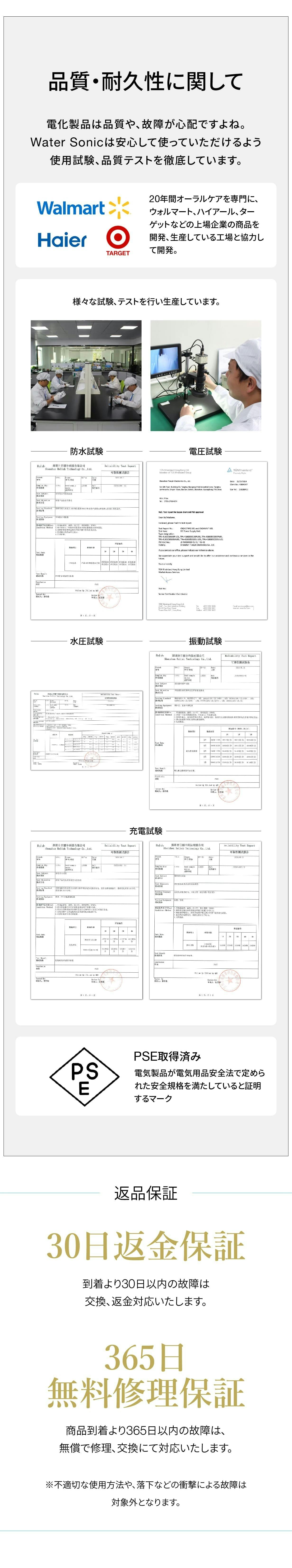 商品到着より365日以内の故障は、無償で修理、交換にて対応いたします。