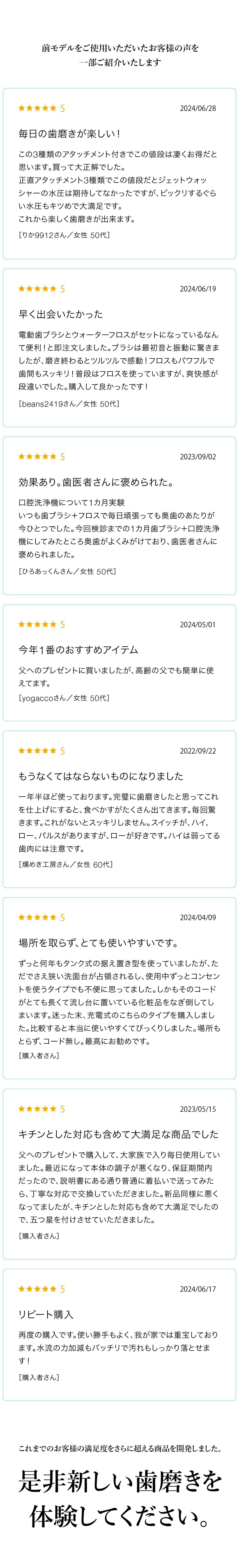 2021年より歯の健康寿命を伸ばすことをミッションとし「ジェットウォッシャーBVRES ビブレス」の製造、販売を開始。