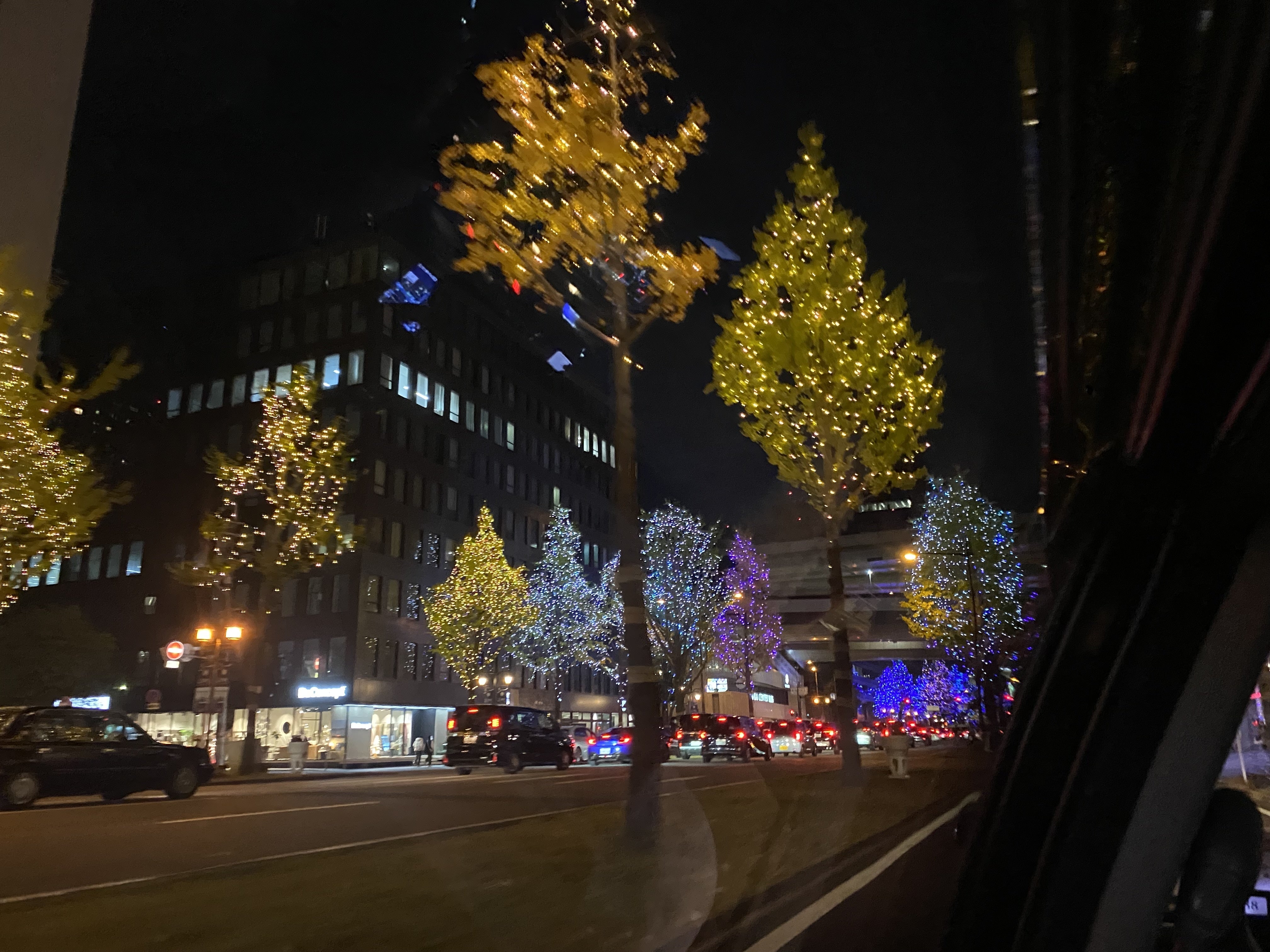 写真は車内からのイルミネーション。