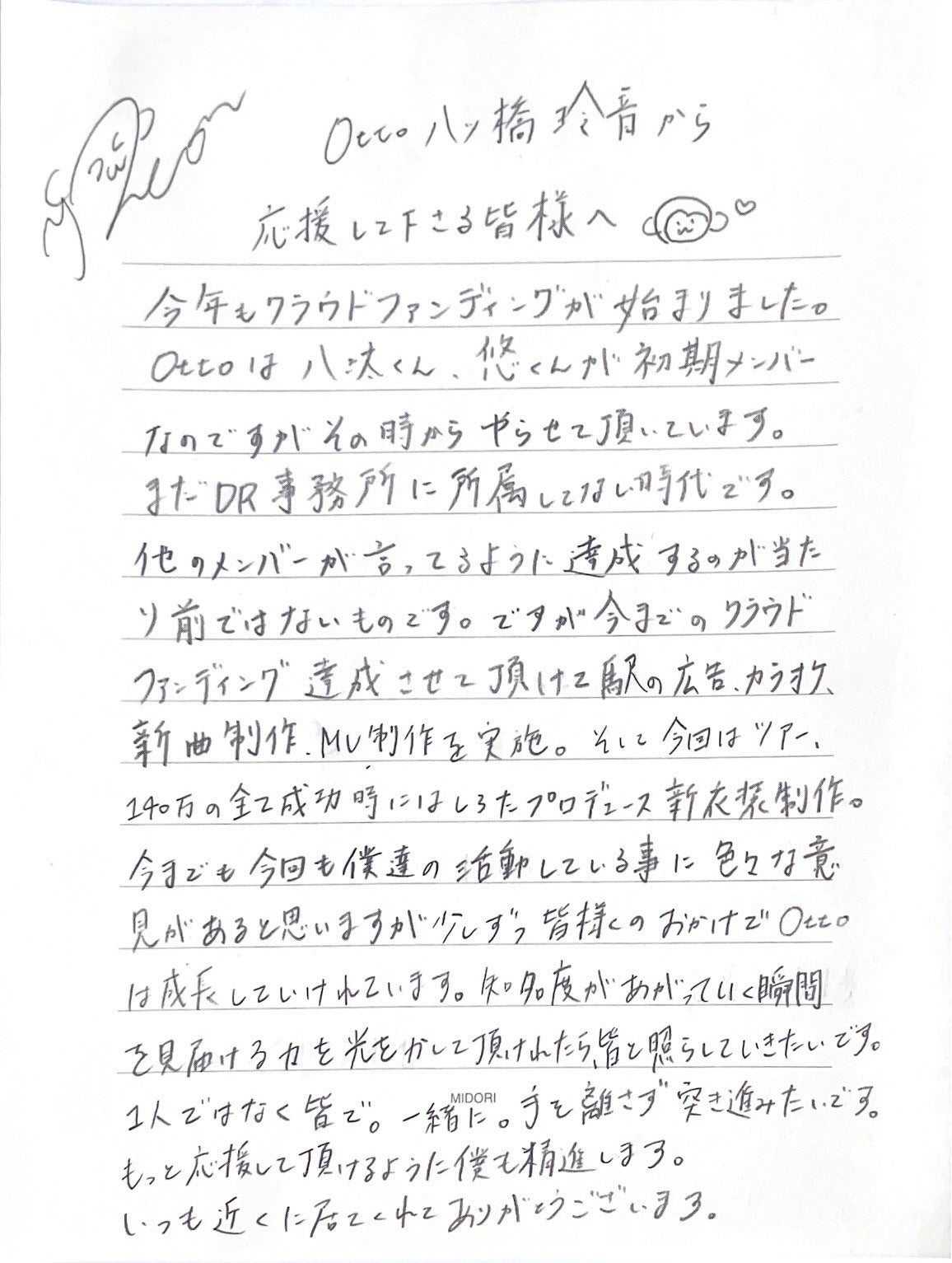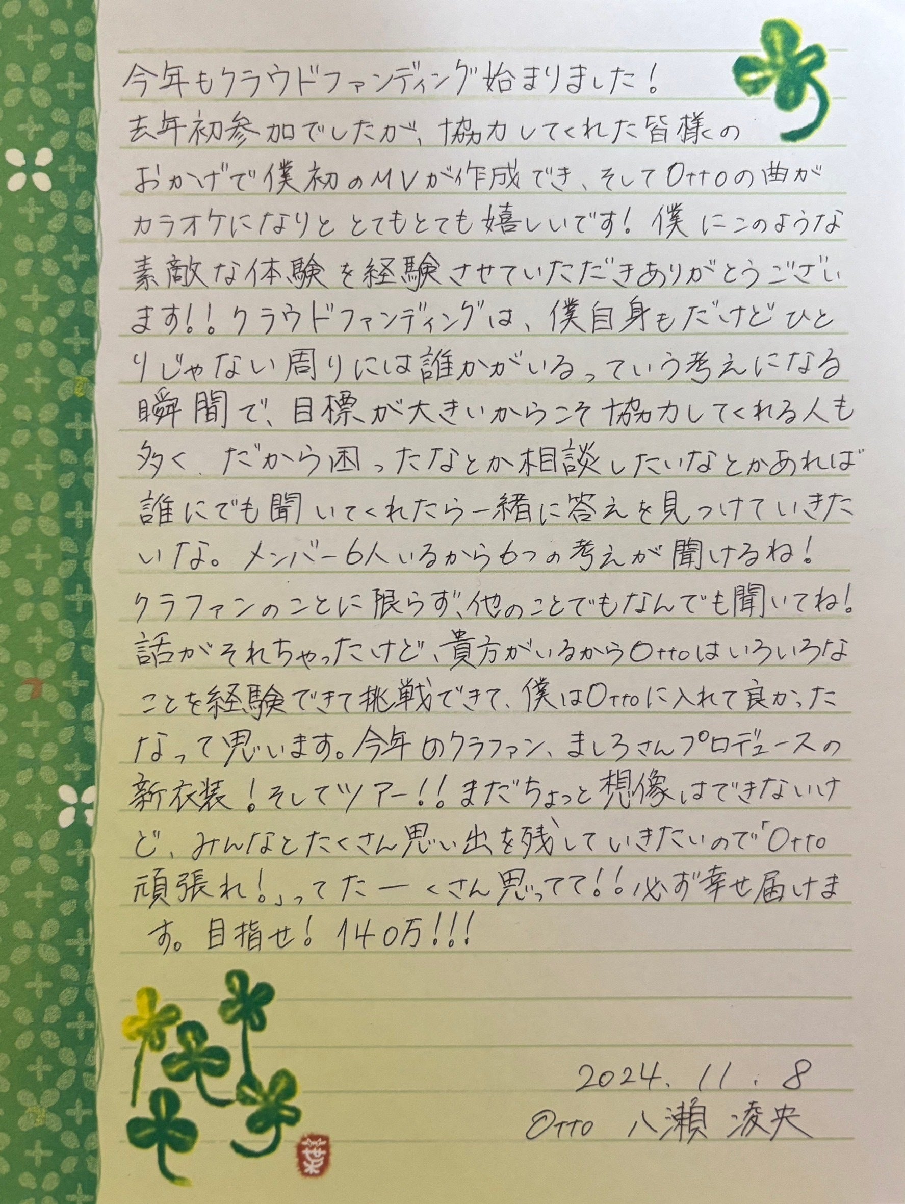 そして活動5年目を迎える今年は「Otto史上最大規模のワンマンライブの成功」につながるプロジェクトをしていきたいと思っております!