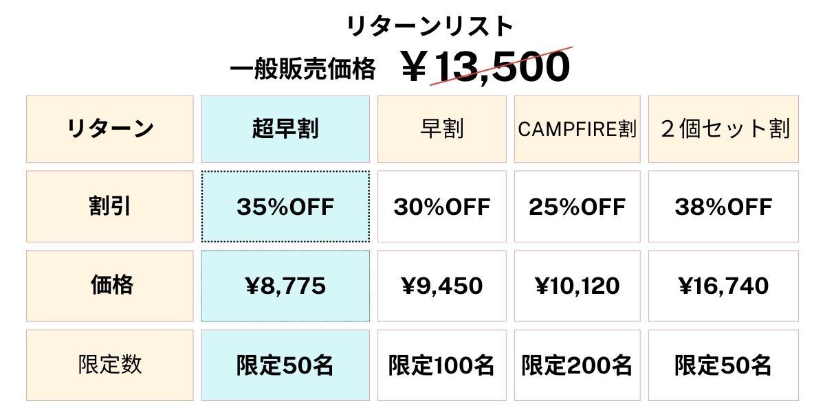 ●支払い方法:CAMPFIREの決済手段に準ずる (詳細はこちら)