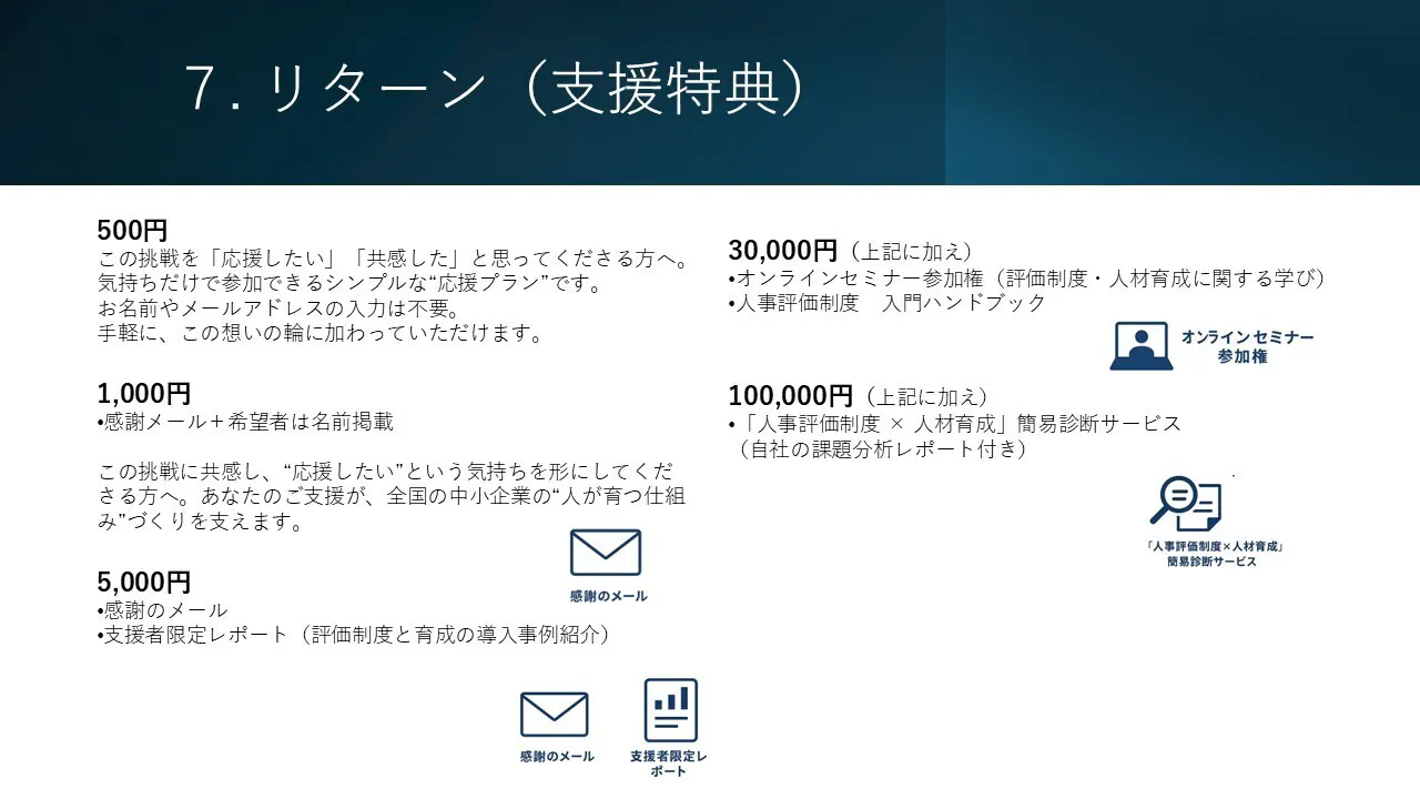あなたの支援が、「人が育つ会社」をひとつ増やします。