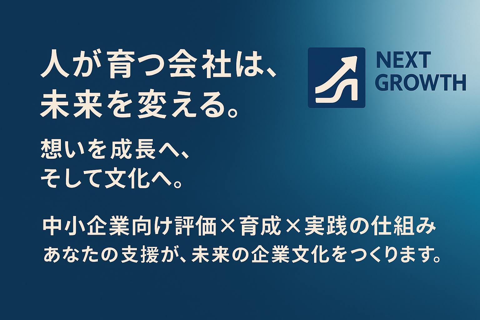 NEXT GROWTHは、評価制度や育成支援をつくる“コンサル”ではありません。