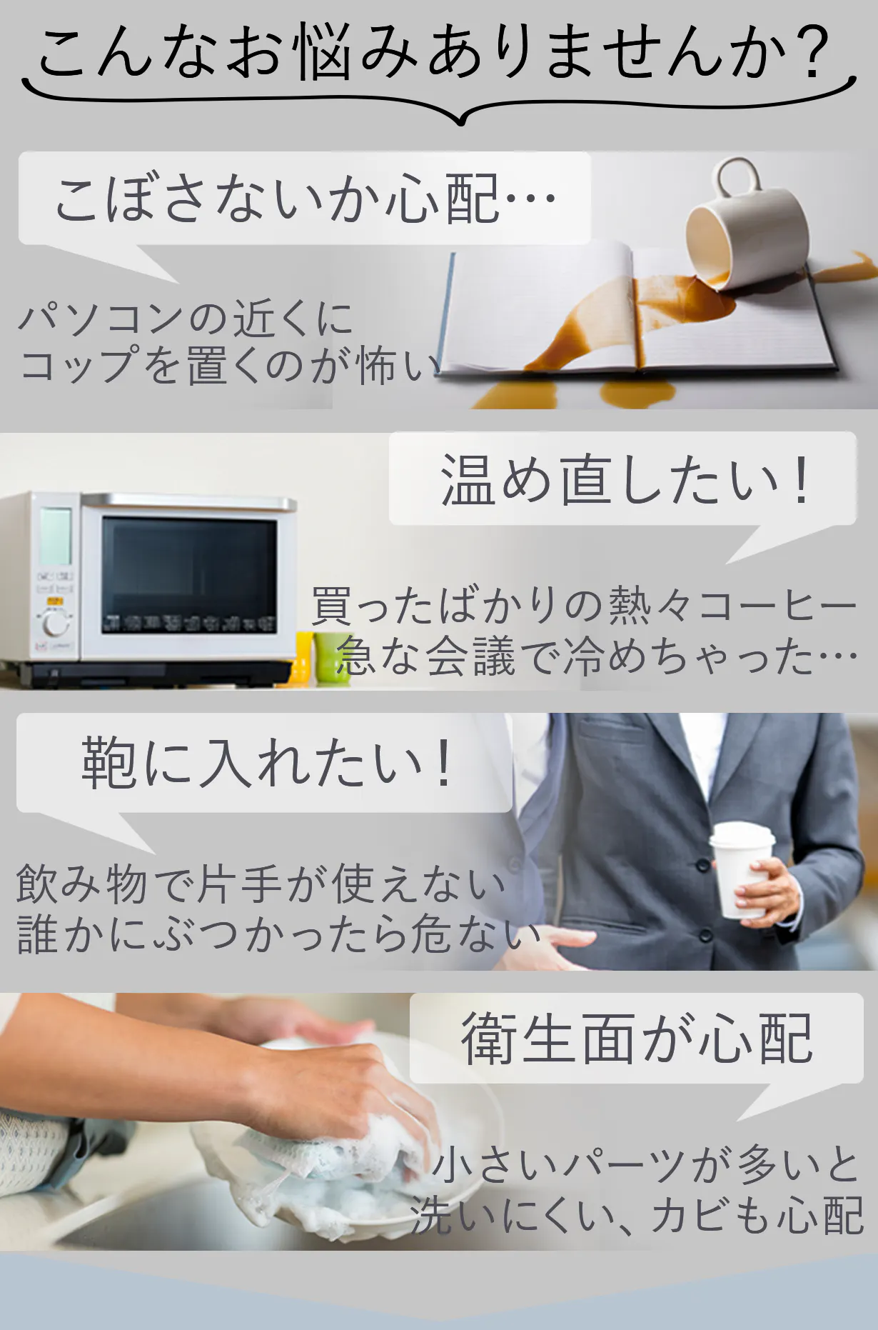 コップに入った飲み物をパソコンの近くに置くと、こぼしてしまいそうで心配だったため、蓋ができて、HOT・ICEの両対応、おしゃれなボトルが欲しい!と思い、ボトルを探し始めたことで、Besovida Bottleに出会いました。