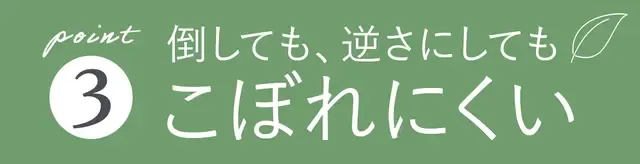 蓋をしなくても、傾けたり逆さにしてもこぼれにくい。