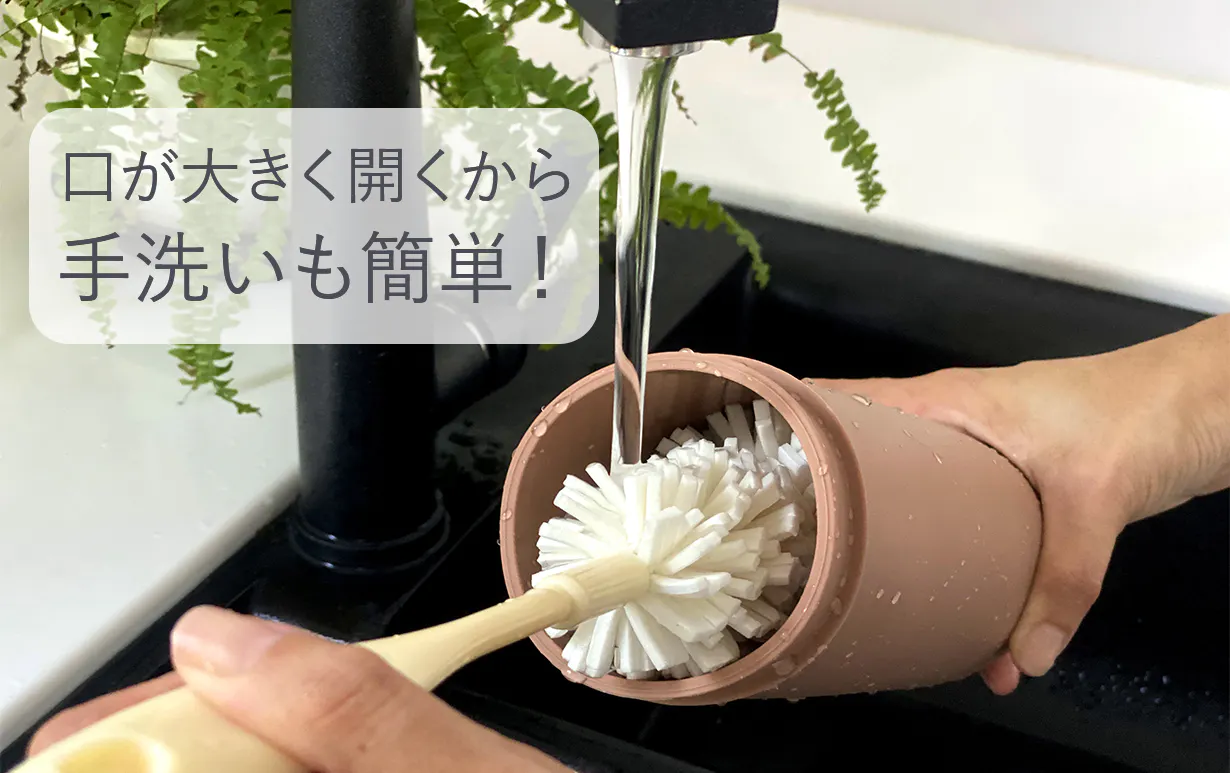 ボトルの口が広く、内側は光沢仕上げになっているため、お手入れがとても簡単です。手の届かない隙間や隅に隠れた汚れが残ることはありません。