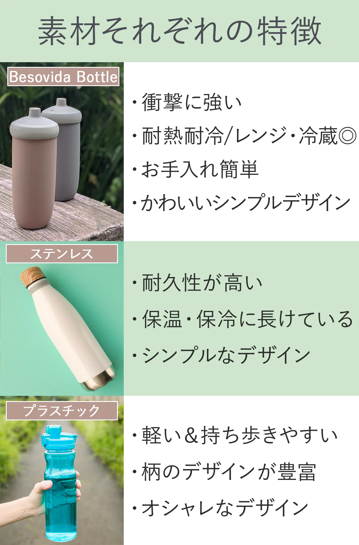 Besovida BottleはBPA FREEなので健康を気にする方にもおすすめです!