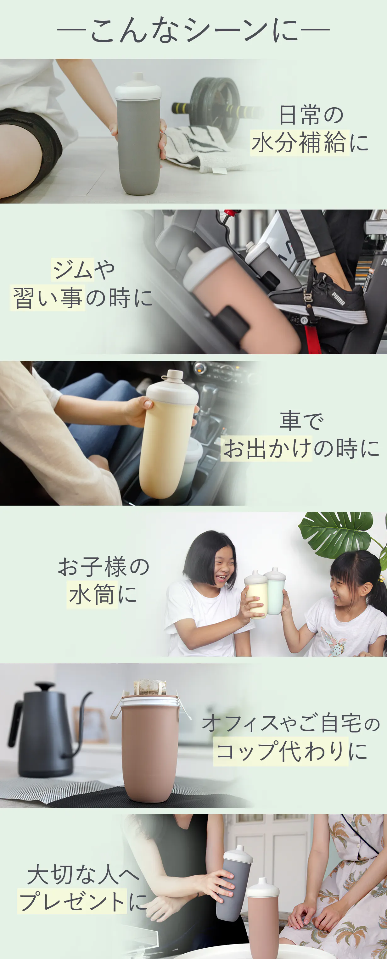 毎日使用している使い捨てのプラスチック ボトルや紙コップをすべて Besovida ボトルに置き換えましょう。