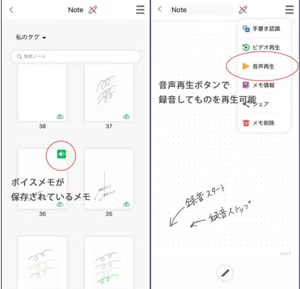 録音と手書きメモが同時保存