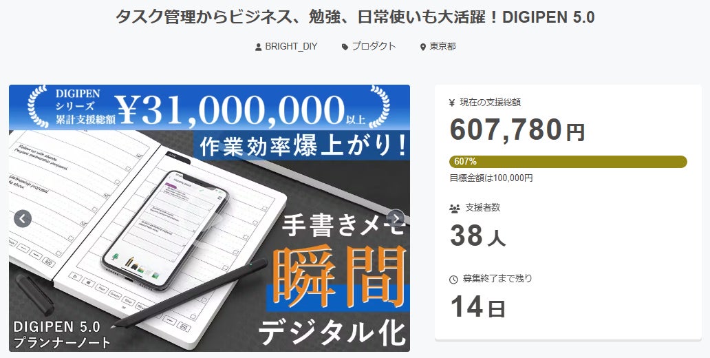 この度は「タスク管理からビジネス、勉強、日常使いも大活躍!DIGIPEN 5.0」に支援頂き誠にありがとうございます!