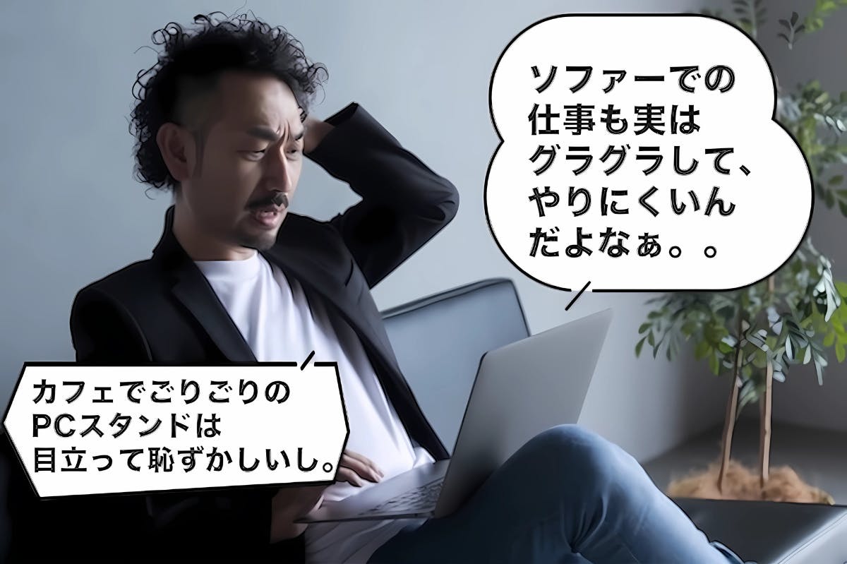 ソファに座って膝の上でノートPC操作、首や肩がとっても疲れませんか?