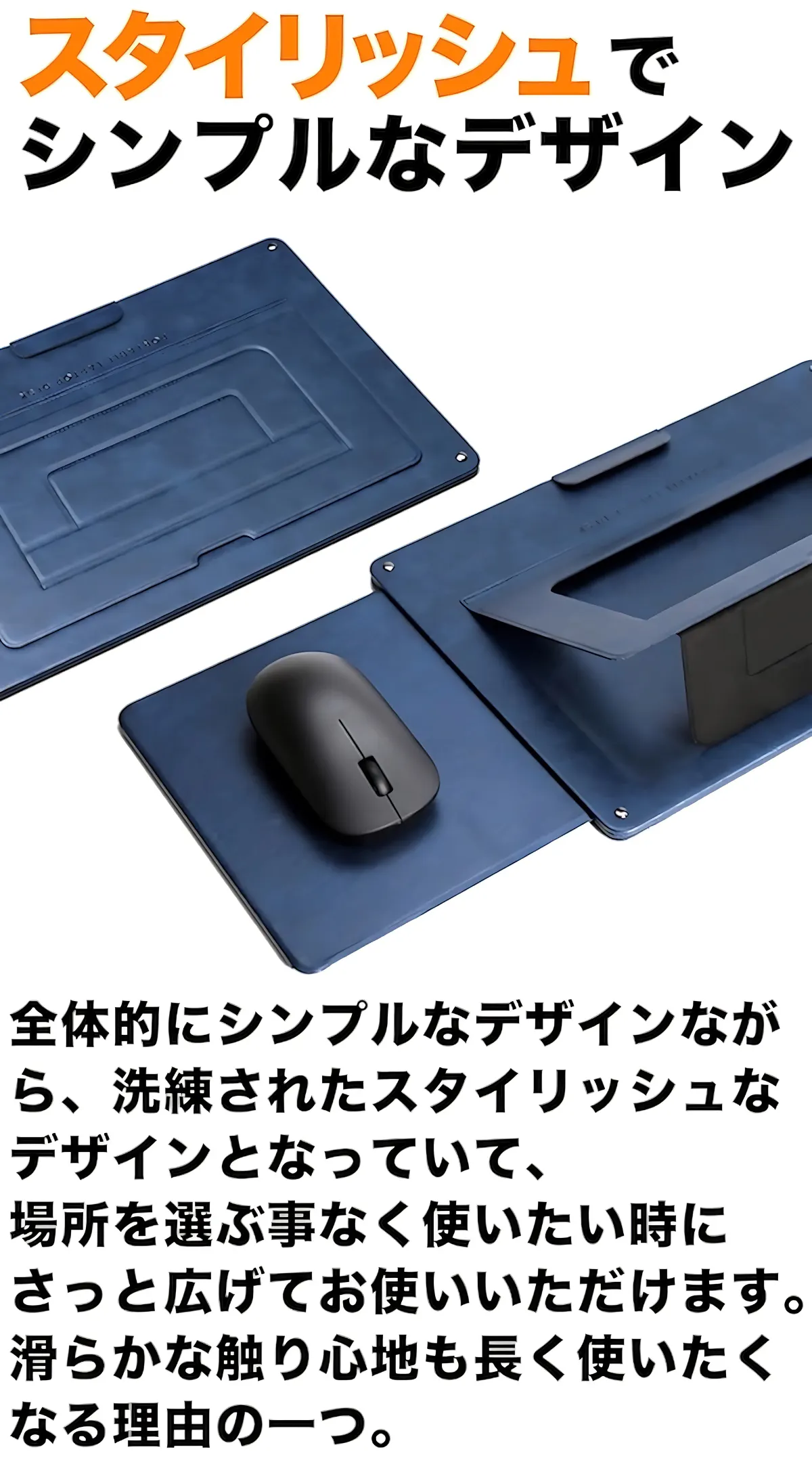 高角をつけて使用しても安定したスタンド構造により、ノートパソコンの重心が補正され滑りが防止されます。また、「PUNCUBE」の表面素材のポリウレタンは柔らかく、適度な弾力性と摩擦力があり滑りを防止します。