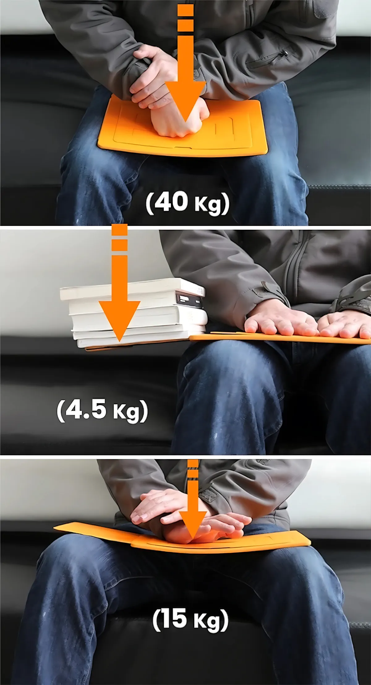 A :極端な角度での使用でない限り、ノートパソコンが滑ったり「PUNCUBE」が膝から滑り落ちたりすることはありません。