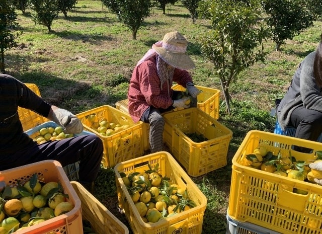また、ここ数カ月内にご縁をいただいた個人農家さんからは「柚子が沢山採れてしまい、知人に配るにも限界がある」「放っておくと傷んでしまう」というお困りの声をいただきました。そこで今回の瀬戸内果実酢を企画開発。「手入れもできていない畑の柚子ですが、良いのでしょうか…?」と不安がる方もいらっしゃいましたが、有難く購入させていただきました。岡山県内だけでなく、愛媛県や和歌山県(ギリギリ瀬戸内海地域なのだそう)の農家さんにもご協力いただけることとなり、過去一番のスケールで原料を購入しております。