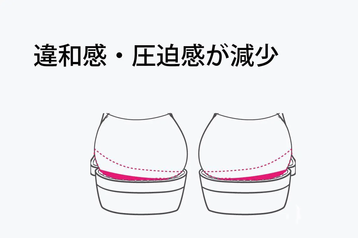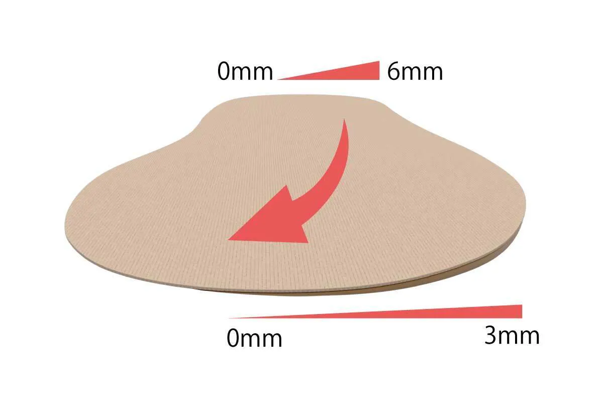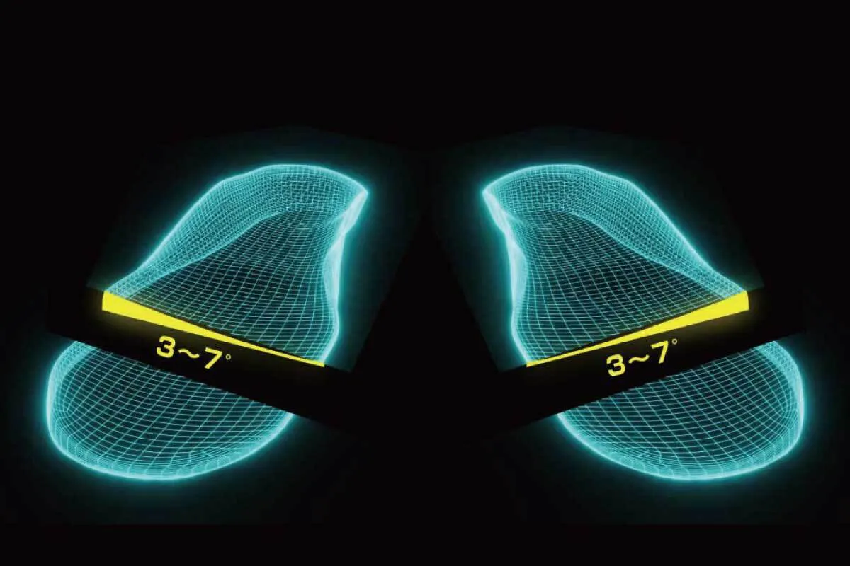 傾斜角度を維持したまま、極限まで薄くしました。圧迫により甲を痛めためる、指が窮屈になることが少なくなります。