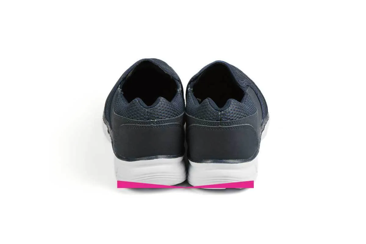 シューズの両かかとの外側が、内側と比べて3mm以上多く減っていると、ヒザの隙間は3.5~4cmと推測され、O脚の疑いがあります。