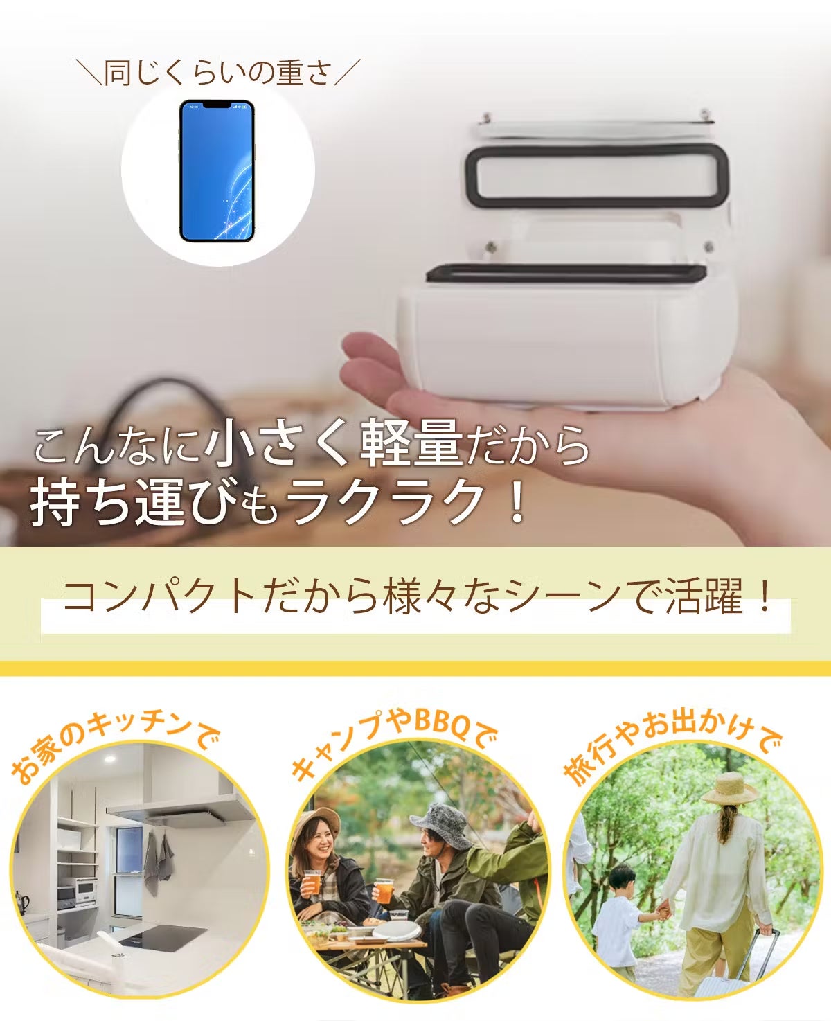 Sealer Vacuum 2.0は、サイズ100x60x50mm、重さはわずか217gという非常にコンパクトなデザインです。これは、一般的な真空パック機の約1/10のサイズに相当します。そのため、家庭での収納も容易で、スペースを取らずにすっきりと収めることができます。また、軽量なので、キャンプや旅行などの際にも楽に持ち運ぶことができ、どこでも手軽に使用できます。このような機動性が、Sealer Vacuum 2.0の大きな魅力となっています。