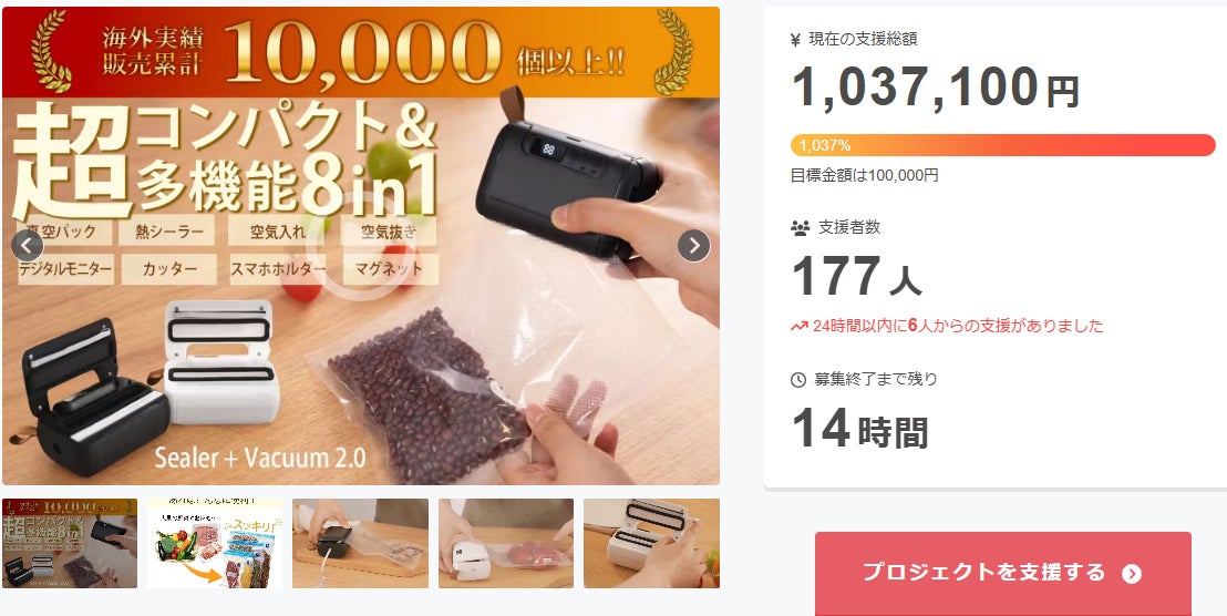 この度は「累計出荷数1万個◎真空パックできて液体保存も可能!超コンパクトな8in1シーラー」に支援頂き誠にありがとうございます!