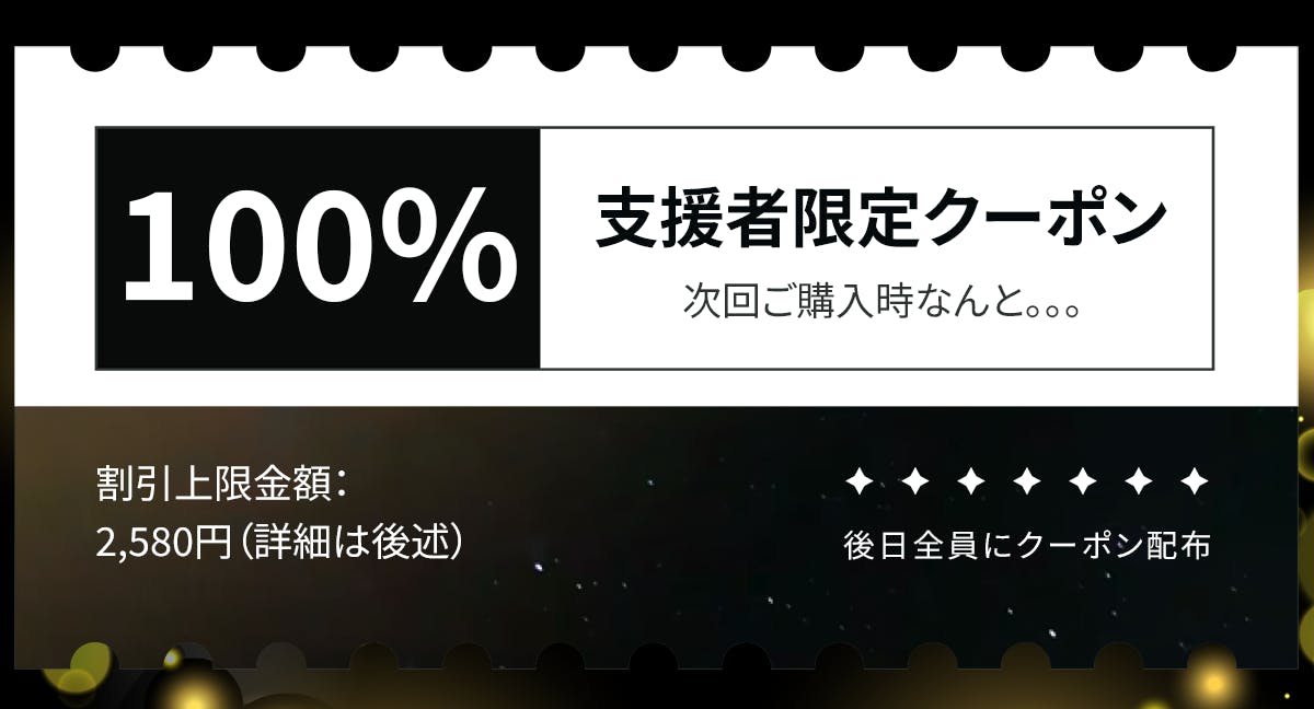 ※支援者様へのクーポン送付時に明記させていただきますので、ご安心ください。