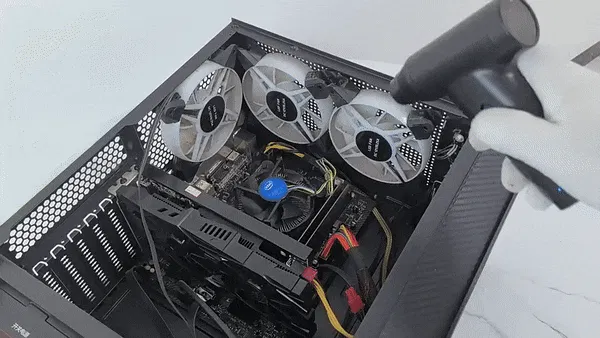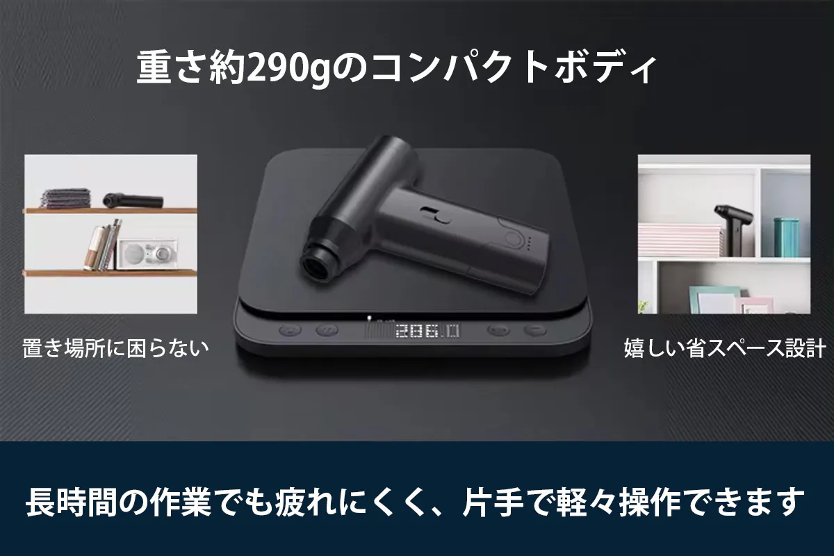 この高速モーターによる強力な風によって、ゴミやほこり・水滴などを瞬時に吹き飛ばします。