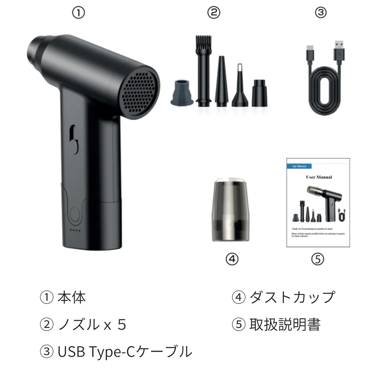 Air Duster J02は、吸引とエア噴射の2way機能を備え、車内のホコリや汚れはもちろん、アウトドアや家庭内でも幅広く活用可能です。わずか286gの軽量設計で持ち運びも簡単。薬剤やフィルター交換の必要がなく、環境にも配慮した設計となっています。