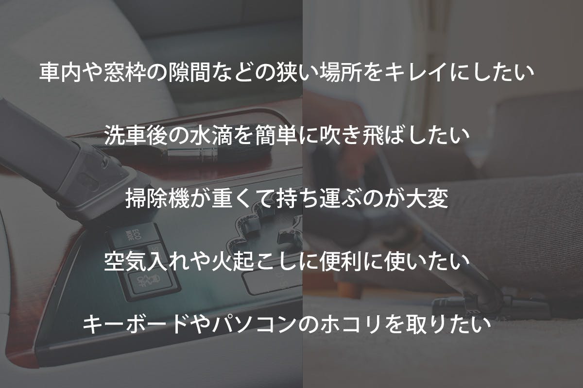 場所や用途に応じて送風と吸引を使い分けできるので、車やお部屋の掃除が捗ること間違いなし!
