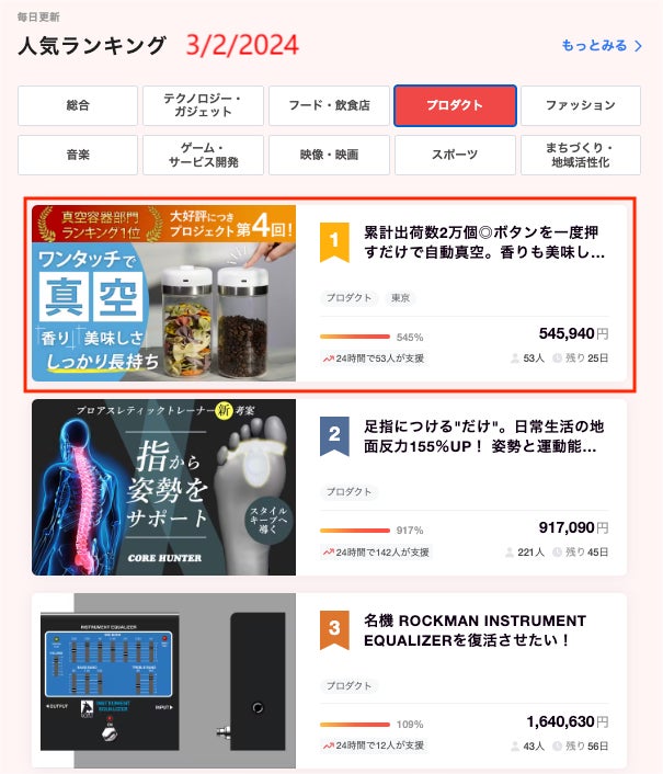 また本日のCampFireランキングプロダクト部門で 1 位!総合で 3 位に入賞することが出来ました!