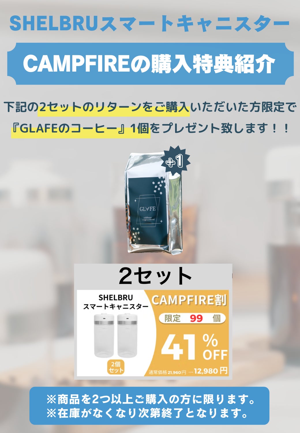 今回は【SHELBRUスマートキャニスター】プロジェクトへの『CAMPFIREの購入特典』を紹介させて頂きます!