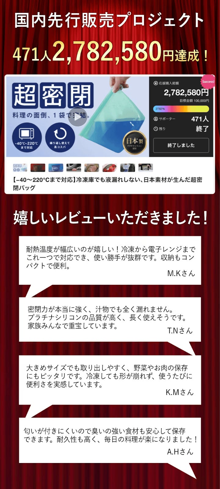 今回は皆さまに「超軽量480gの高密閉シリコン保存容器。40〜220℃対応で、冷凍・レンジOK。日常から旅行まで使える話題の商品」プロジェクトを紹介させて頂きます。
