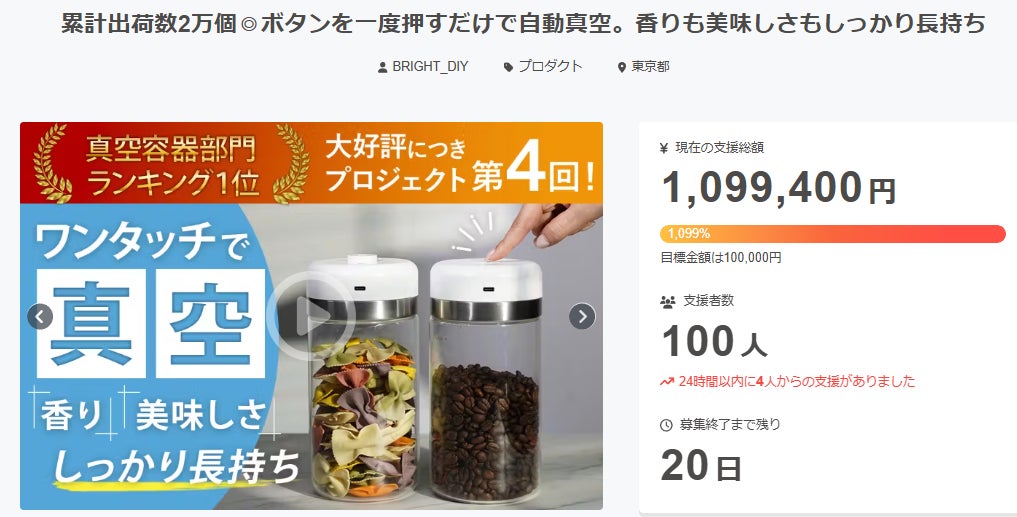 皆様、こんばんは!Bright DIYチームです。忙しい日常生活の中で、食材の鮮度を長持ちさせ、無駄な食品廃棄を減らすことは重要な課題です。そんな中、SHELBRUスマートキャニスターは、まさに現代のキッチンに欠かせないアイテムとして登場しました。充電が簡単で、長時間使用可能、さらに直感的なLEDインジケーターを搭載することで、日々の食品保存をより便利で効率的にしてくれるこの製品は、忙しい方々の強力な味方です。1. 充電の手軽さSHELBRUスマートキャニスターの最大の特徴は、その充電の手軽さにあります。Type-Cケーブルを使用して充電することができ、フル充電には約4時間を要します。この手軽さは、忙しい日常生活の中で大きな利点となります。2. 長時間の使用が可能フル充電で約4000時間の使用が可能であり、約300~330回の使用が可能です。これは、日々の食品保存において、繰り返し使えることを意味します。長期間にわたって安定した性能を保つことができるため、経済的かつ環境にも優しい選択肢です。3. LEDインジケーターで状態を一目で確認SHELBRUスマートキャニスターは、LEDインジケーターを搭載しています。充電中は青色のLEDが点灯し、バッテリー不足や動作異常が発生した場合は赤色のLEDが点滅します。また、真空状態を維持している時は緑色のLEDが点灯するため、容器の状態を一目で把握することが可能です。SHELBRUスマートキャニスターは、その充電の手軽さ、長時間の使用可能性、そして直感的なLEDインジケーターにより、日々の食品保存に革命をもたらします。このスマートキャニスターを使えば、食材の鮮度を長持ちさせることができ、食品廃棄の削減にもつながります。現代のキッチンにおいて、シェルブリュスマートキャニスターは、まさに必需品と言えるでしょう。以上、Bright DIYチームでした!ご興味のある方はこの機会をお見逃しなく!https://camp-fire.jp/projects/view/808193Brightチームは、当プロジェクトをもっと多くの方に知っていただきたいと考えております。よかったら、FacebookやTwitter等のSNSでのシェア・拡散をお願い致します。#shelbru #brightdiyどうぞよろしくお願い致します。Brightチーム
