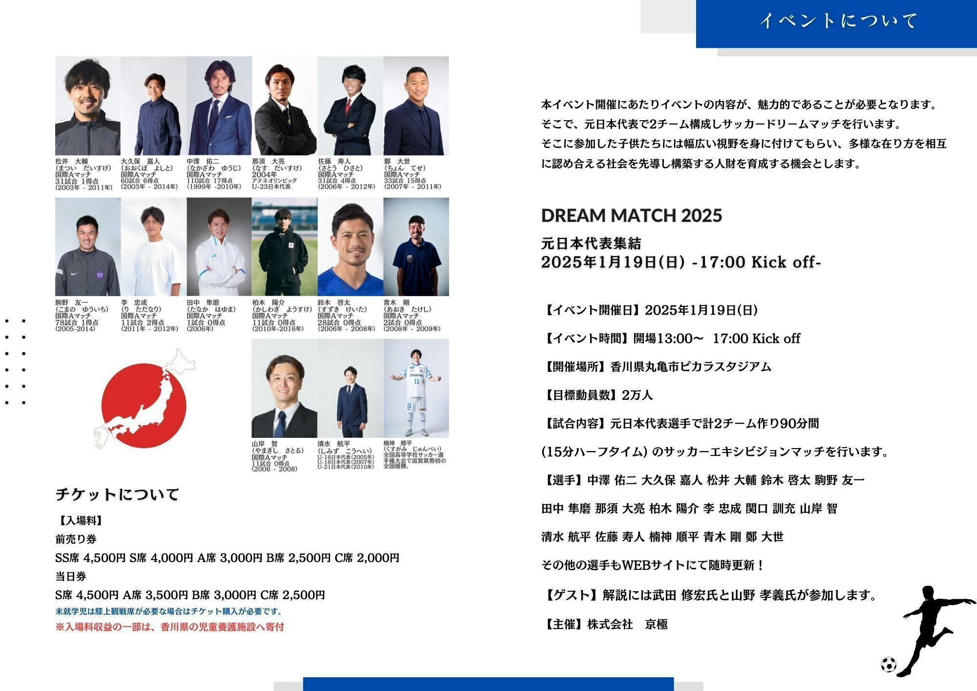 2025年1月19日に元日本代表が送るサッカーDREAM MATCHを多くの人に来場していただきです!!