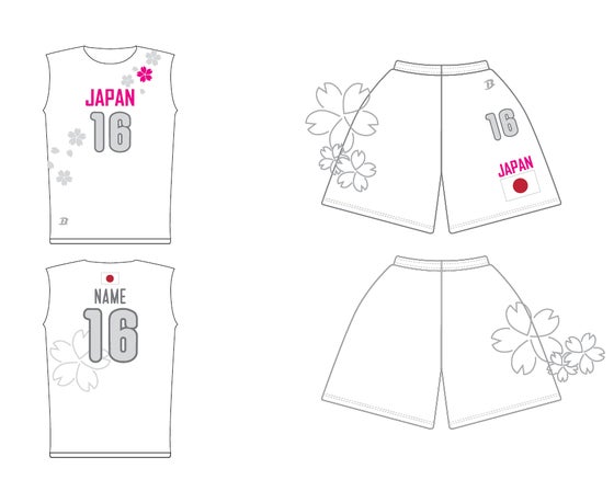 今回は桜をモチーフに胸元に「JAPAN」、背面に国旗を入れました。