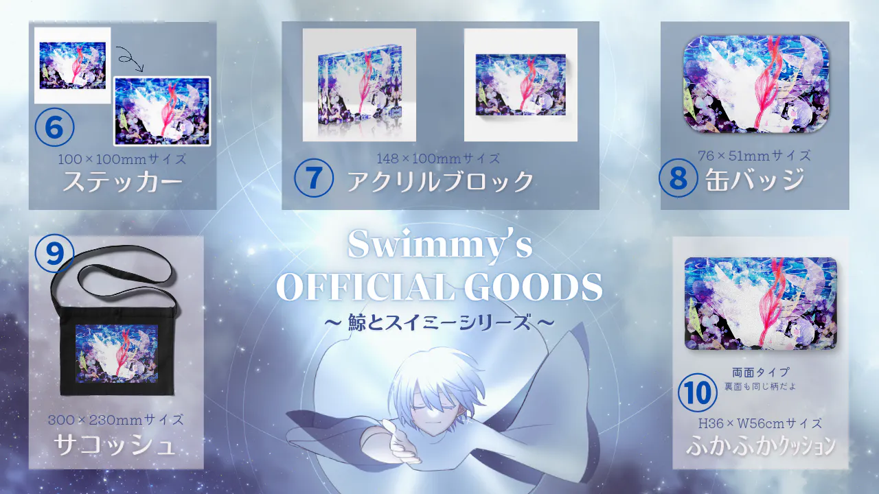 スイミーの新たなLive2D姿を見ながら限定ボイスを楽しむことができます。動画データと一緒に音声データもお送りいたします。