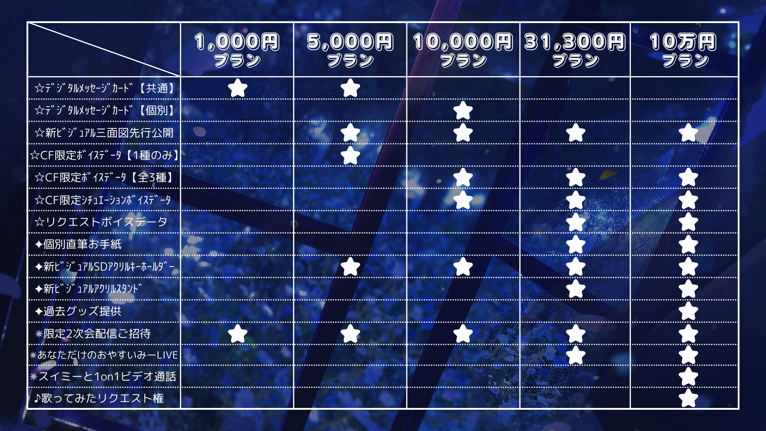 ・クラファン達成感謝配信のエンドロールにてお名前を掲載 (任意)