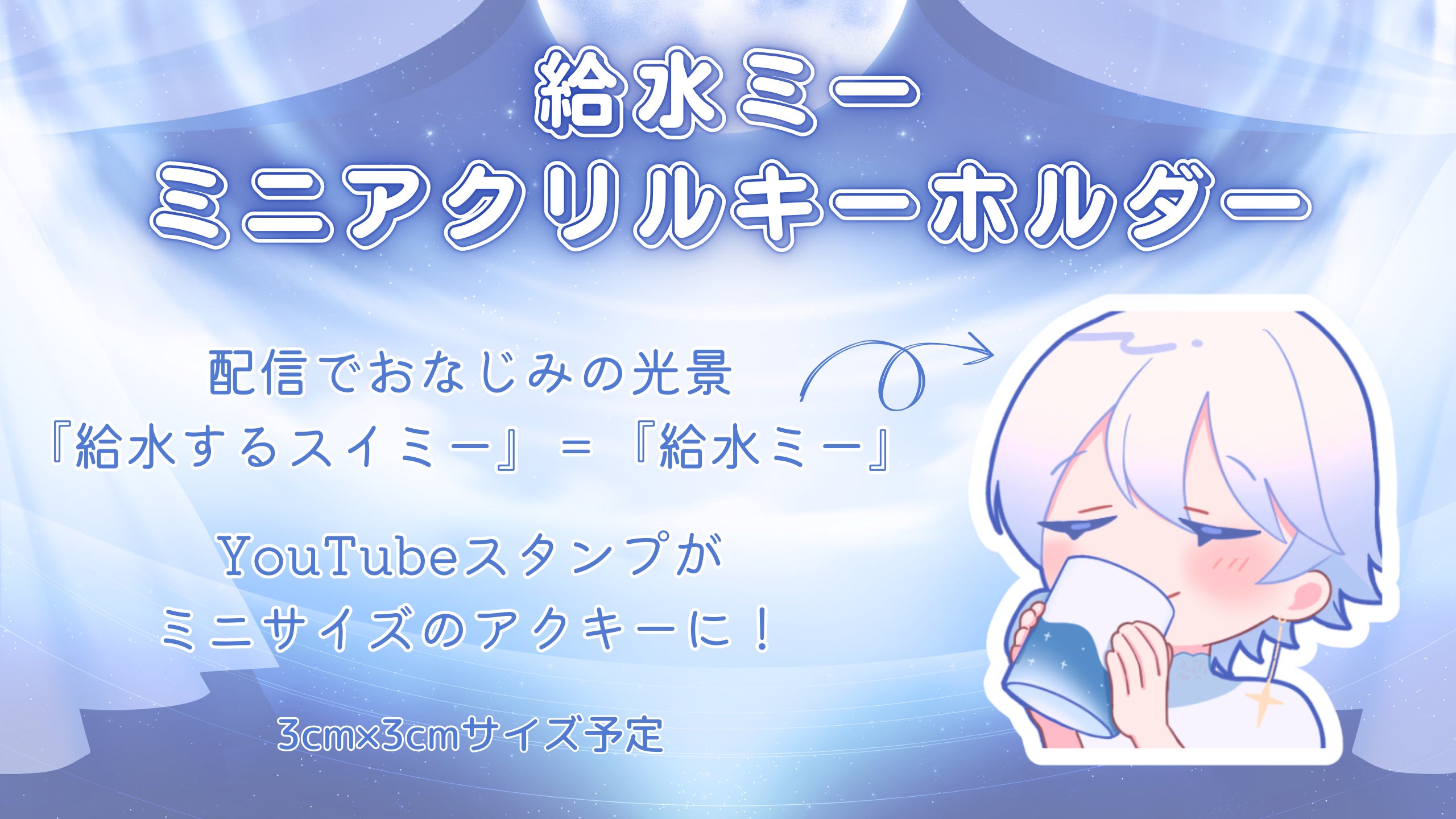 配信上でおなじみのYouTubeスタンプ『給水するスイミー』略して『給水ミー』のミニサイズのアクリルキーホルダーです。