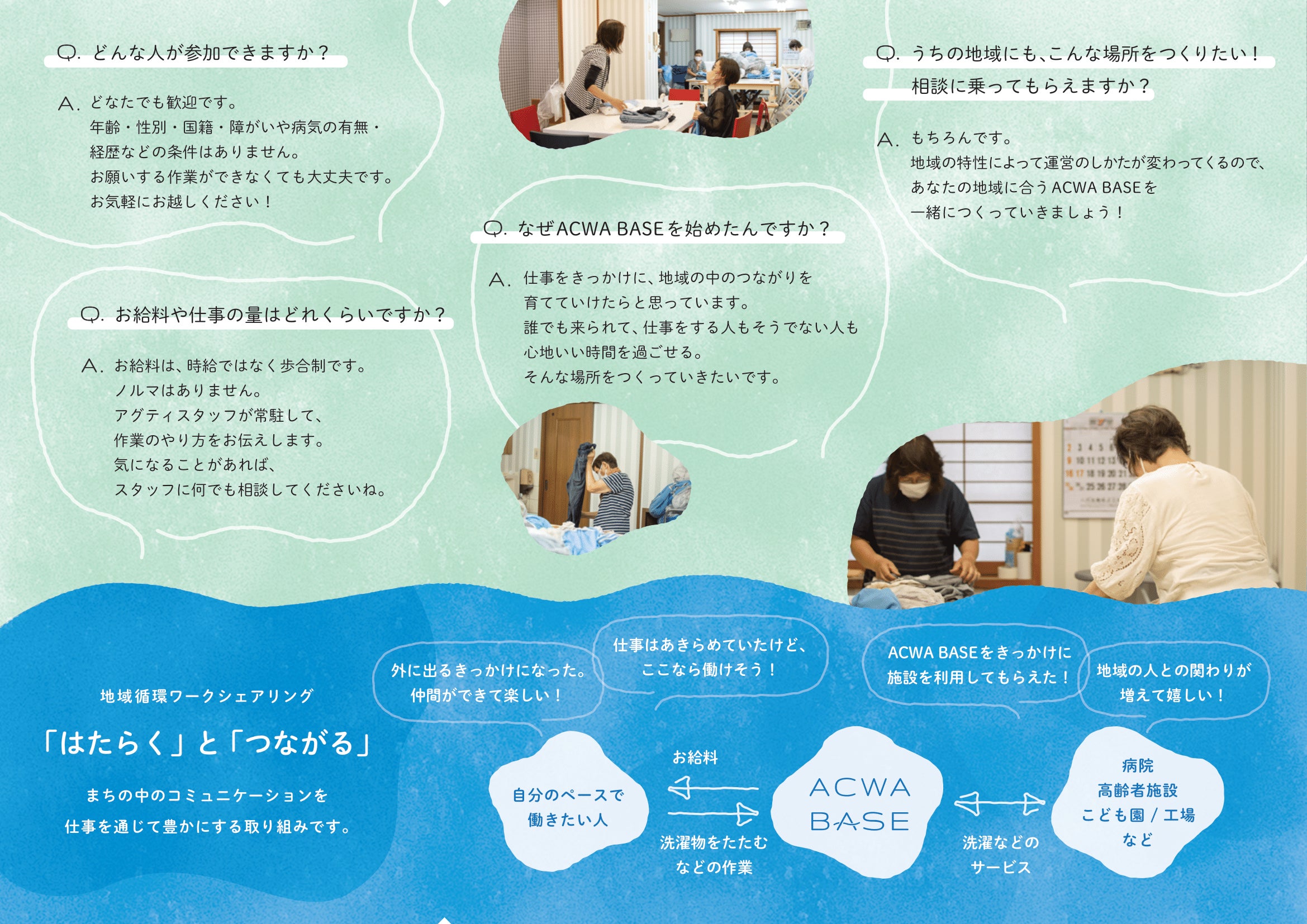 洗濯物のたたみ・袋詰め作業を、 歩合制+ノルマなしで実施。自分のペースで、無理なく働けるように配慮されています。